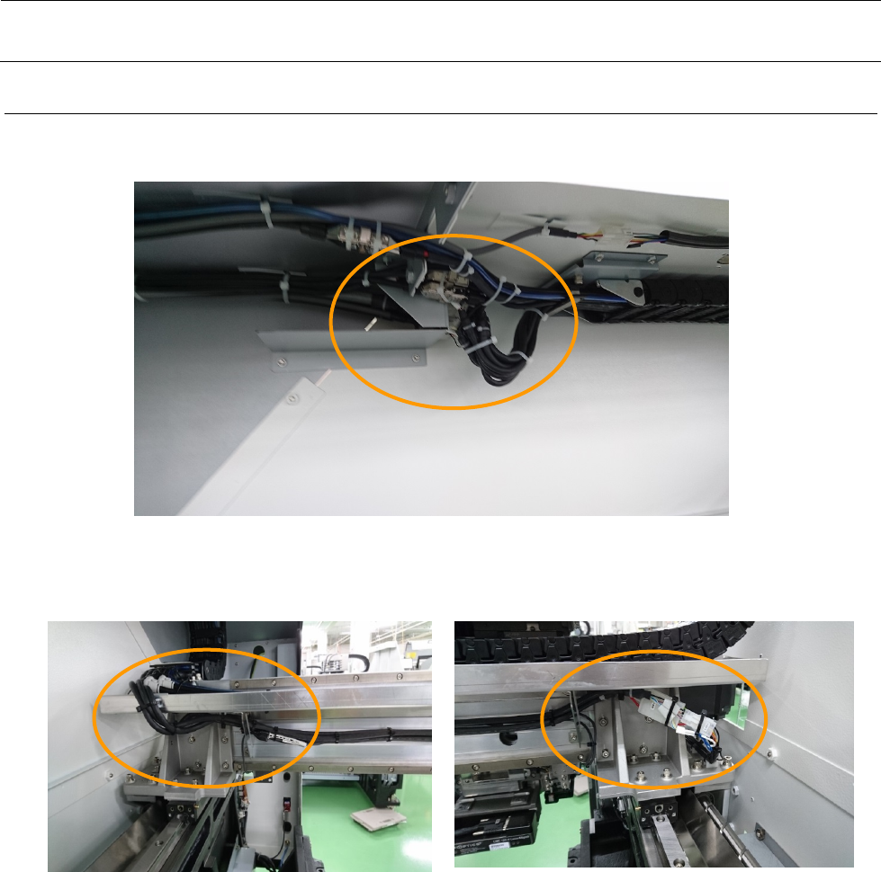 4) 马苏推 XY 拖链电缆,OPTICAL FIBER CABLE 7M②方向。和白色标记在在 X 线拖链的端部位置
