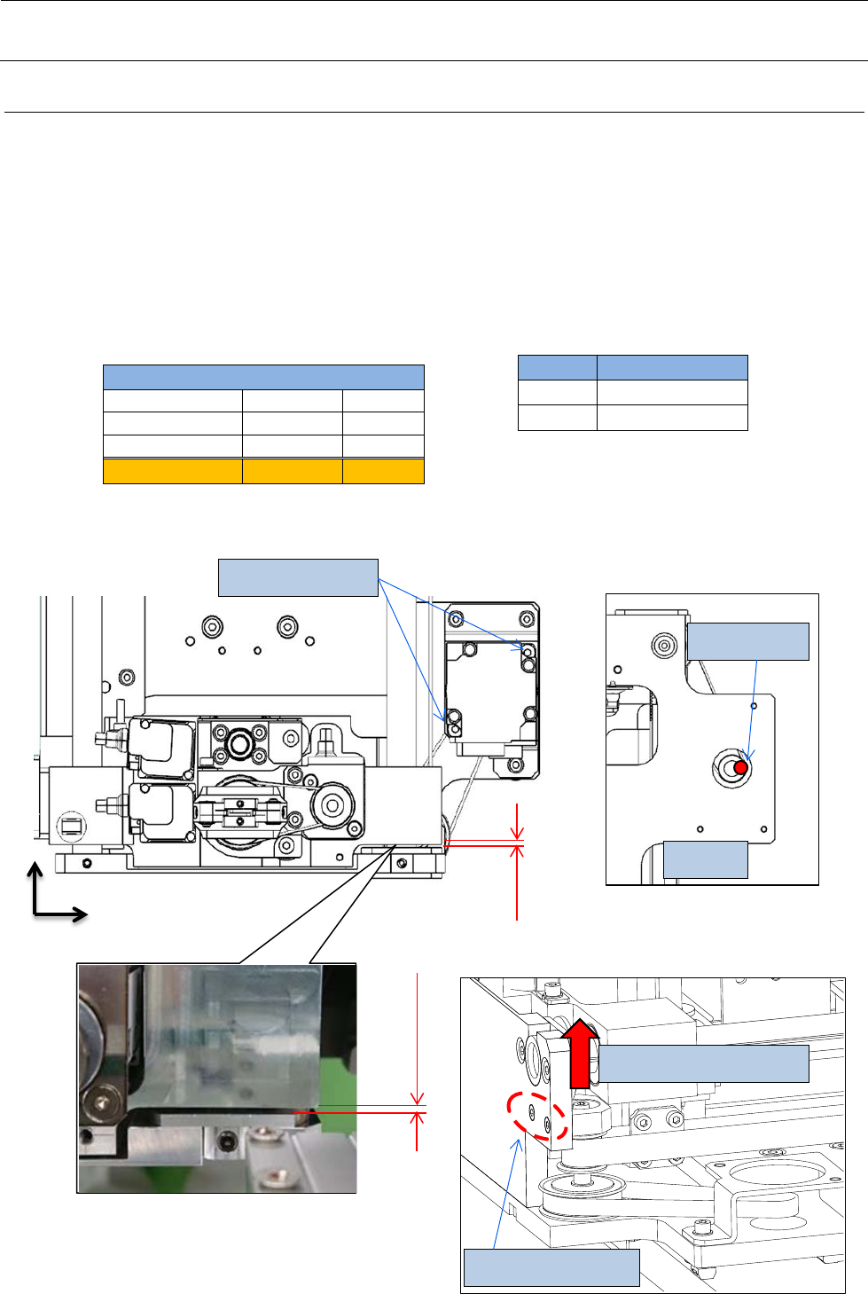 此时,请将弯脚固定单元朝 X(-)方向抵住,在此状态下使电动机轴的记号位于 8 点钟方向。调整后