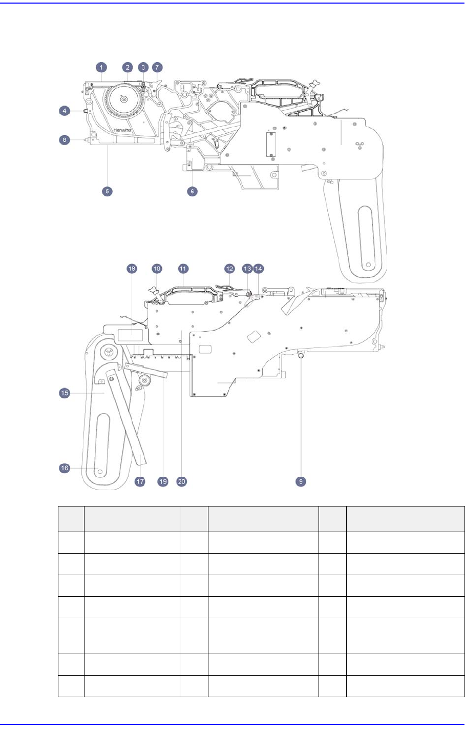 1-2 SM-Series SME DB Tape Feeder User's Manual 1.1.2. SME 8mm Tape Feeder Figure1.2 Configuration of SME 8mm tape feeder No. Name No. Name No. Name 1 T ape Guide 2 Locker 3 X Eccentric Pin 4 Location Flange 5 Inst a…