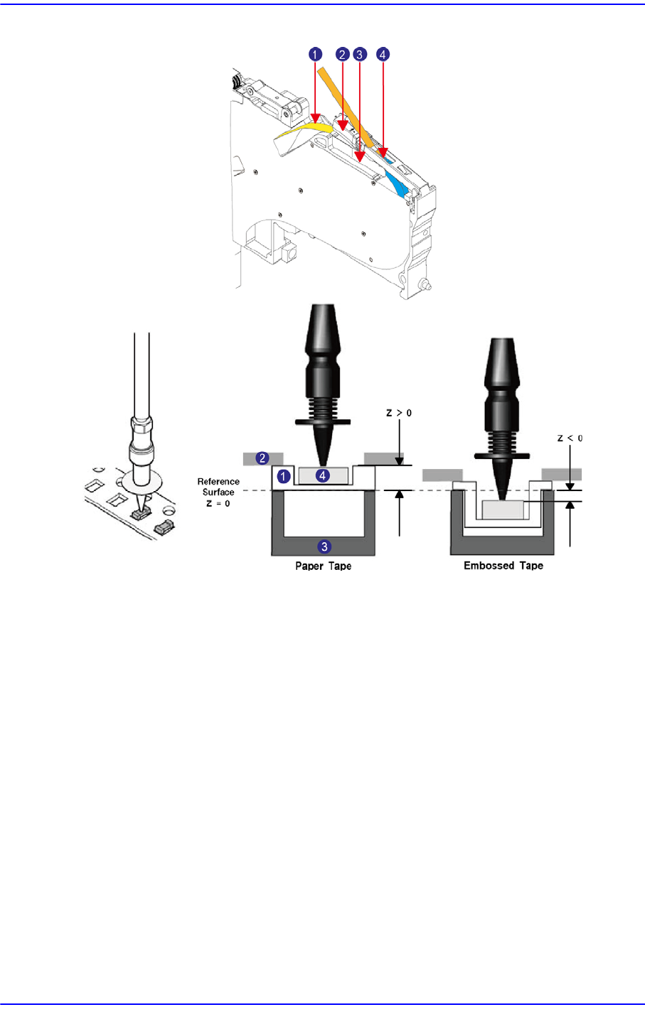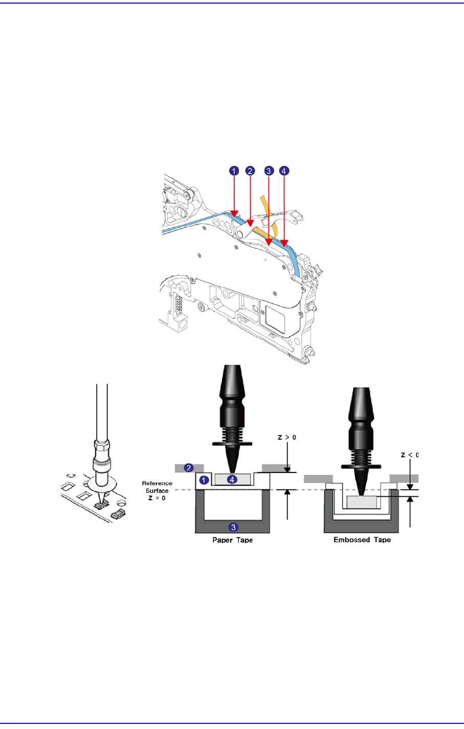1-5 Overview 1.3. Reference for feeder ’s pickup height setup The reference plane for Z-axis h eight of the tape feeder is ben eath (above the main frame) the tape at the pickup posi tion. Actual pickup h eight o f each …