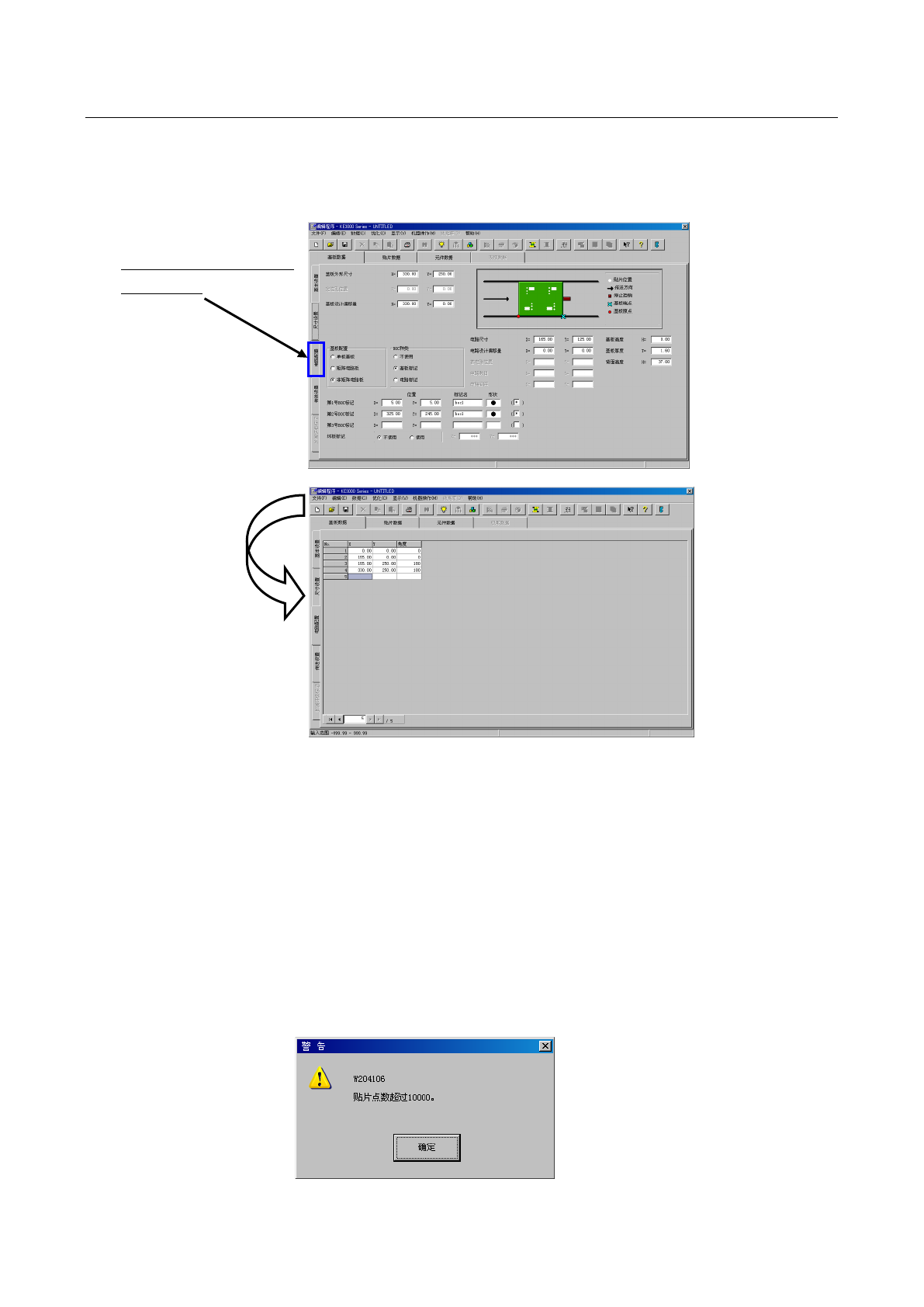 即使电路数在规定值以下,但是当总贴片点数超过10,000 点时,会显示如下提示信息。