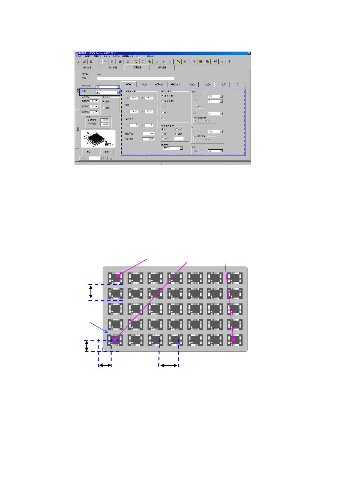 输入从托盘外形到首元件的元件中心位置的尺寸(X、Y)。