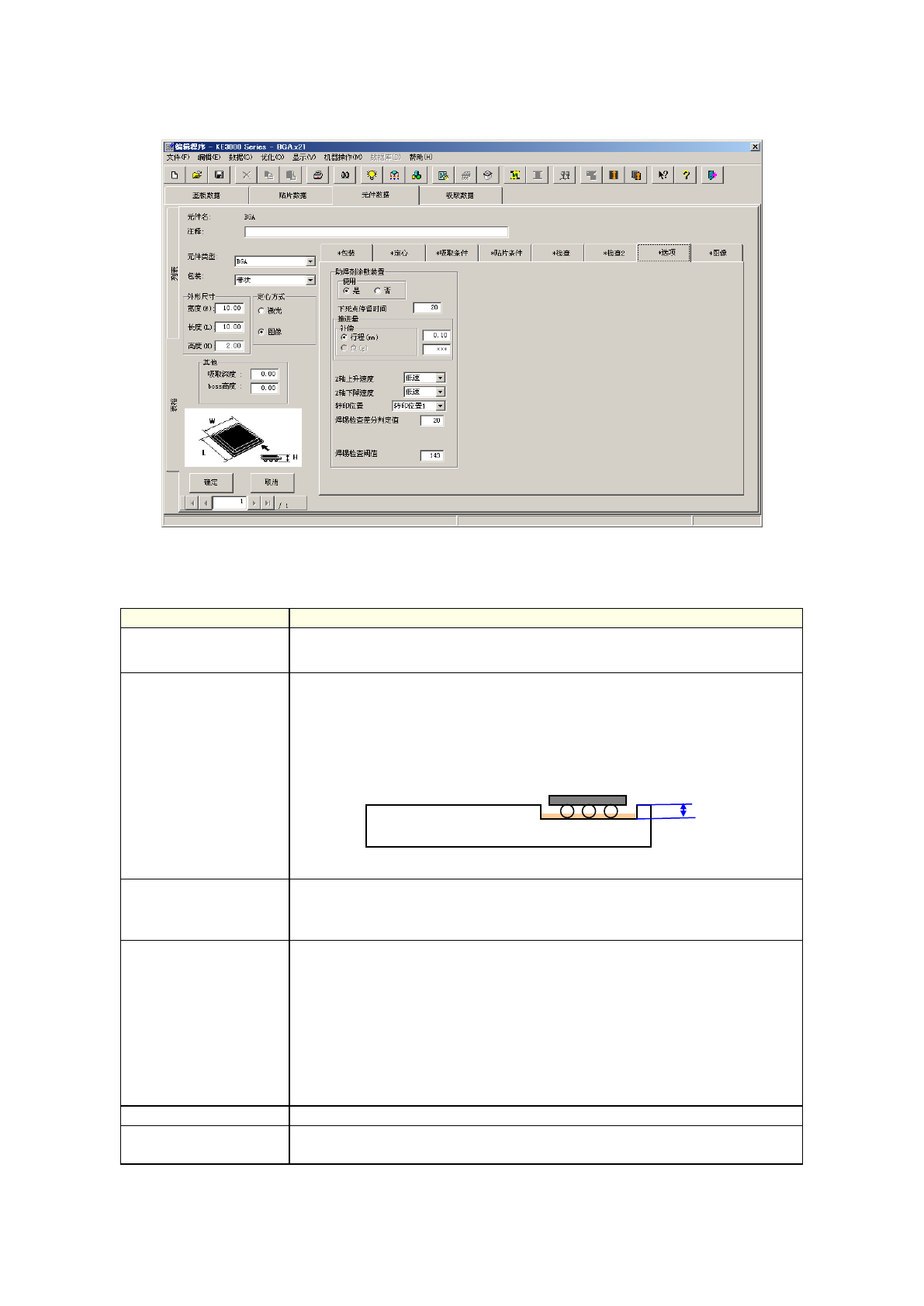为了进行定心、检测不良状况,必须在图像数据中输入引脚、球形等尺寸,及设置不良状况的检测