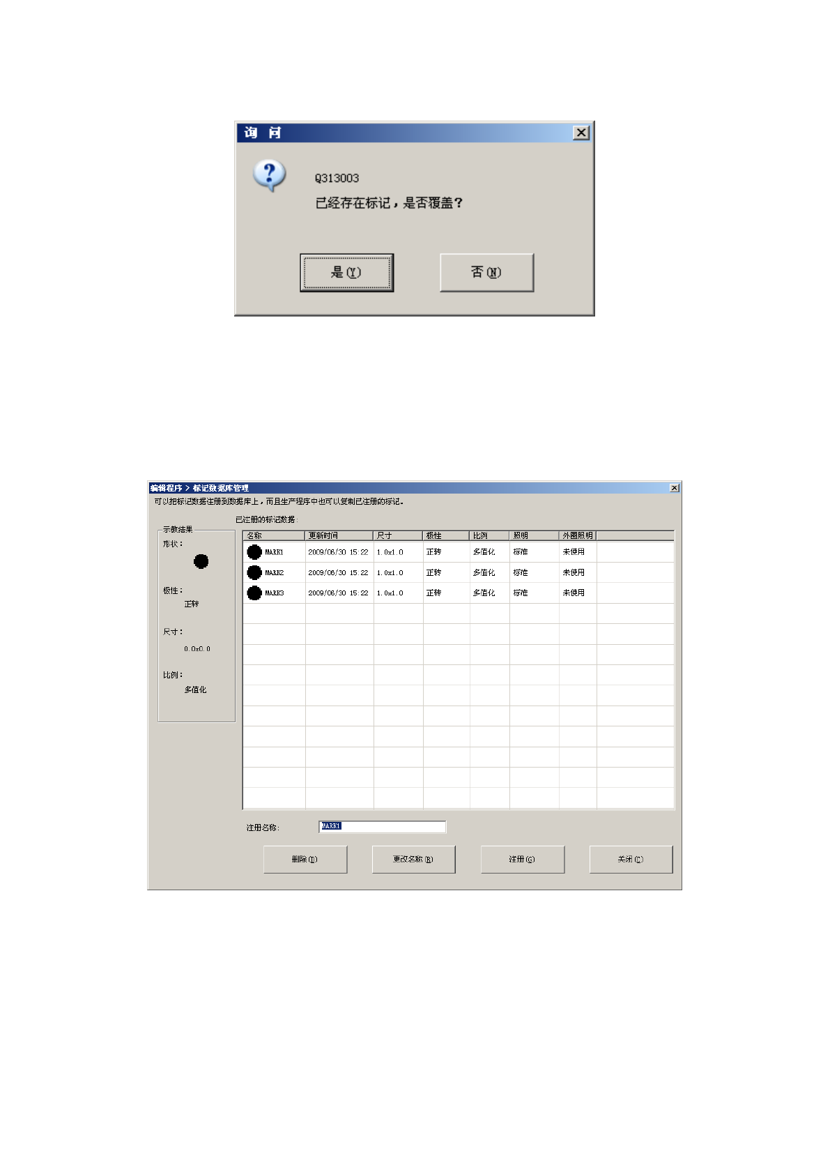 可删除已经注册的(标记)数据。将光标调整到列表中要删除的数据行,按下“删除”按钮时,会显示如下