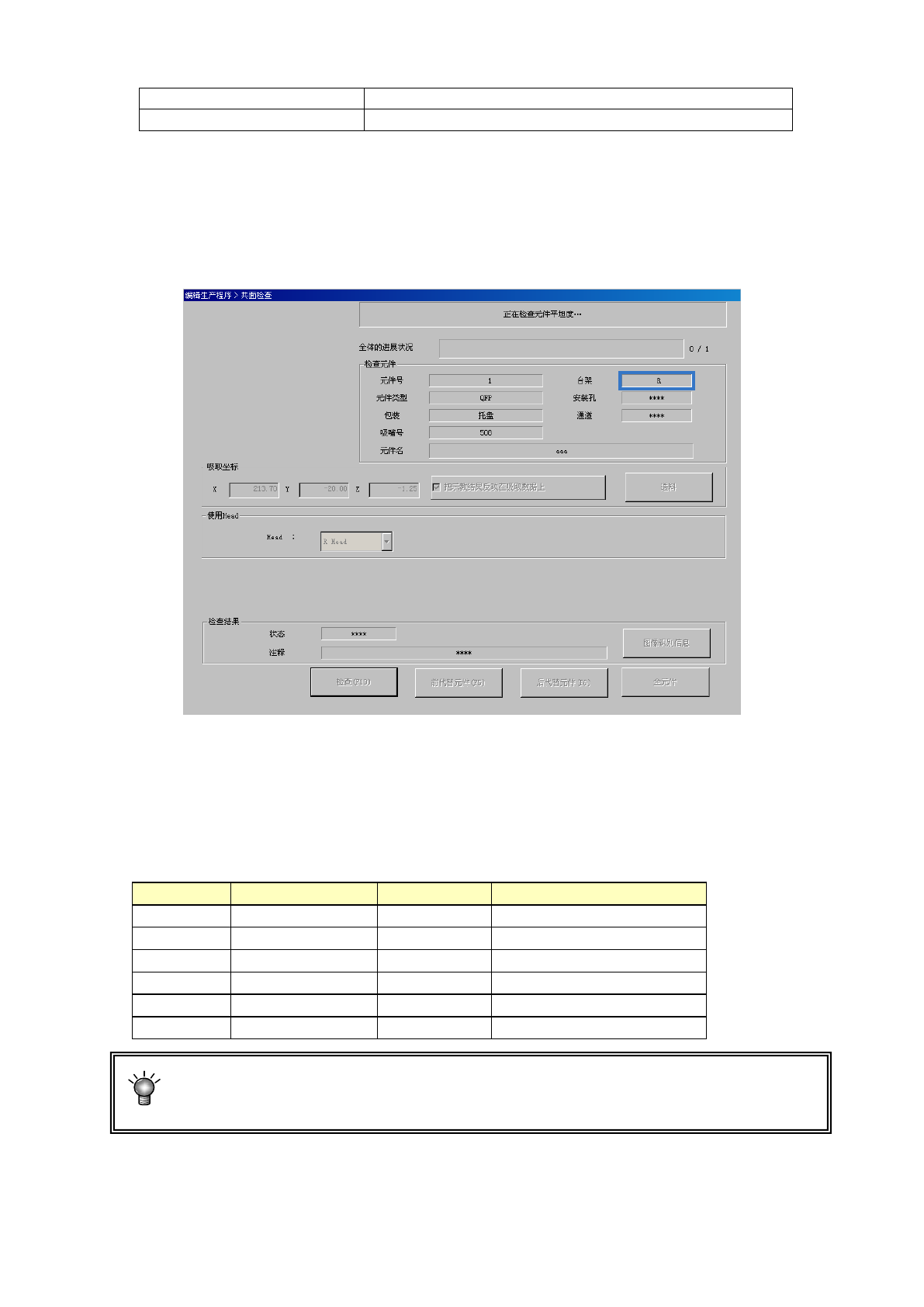显示正在进行检查的元件内容/吸取位置,逐项显示执行中的处理内容。