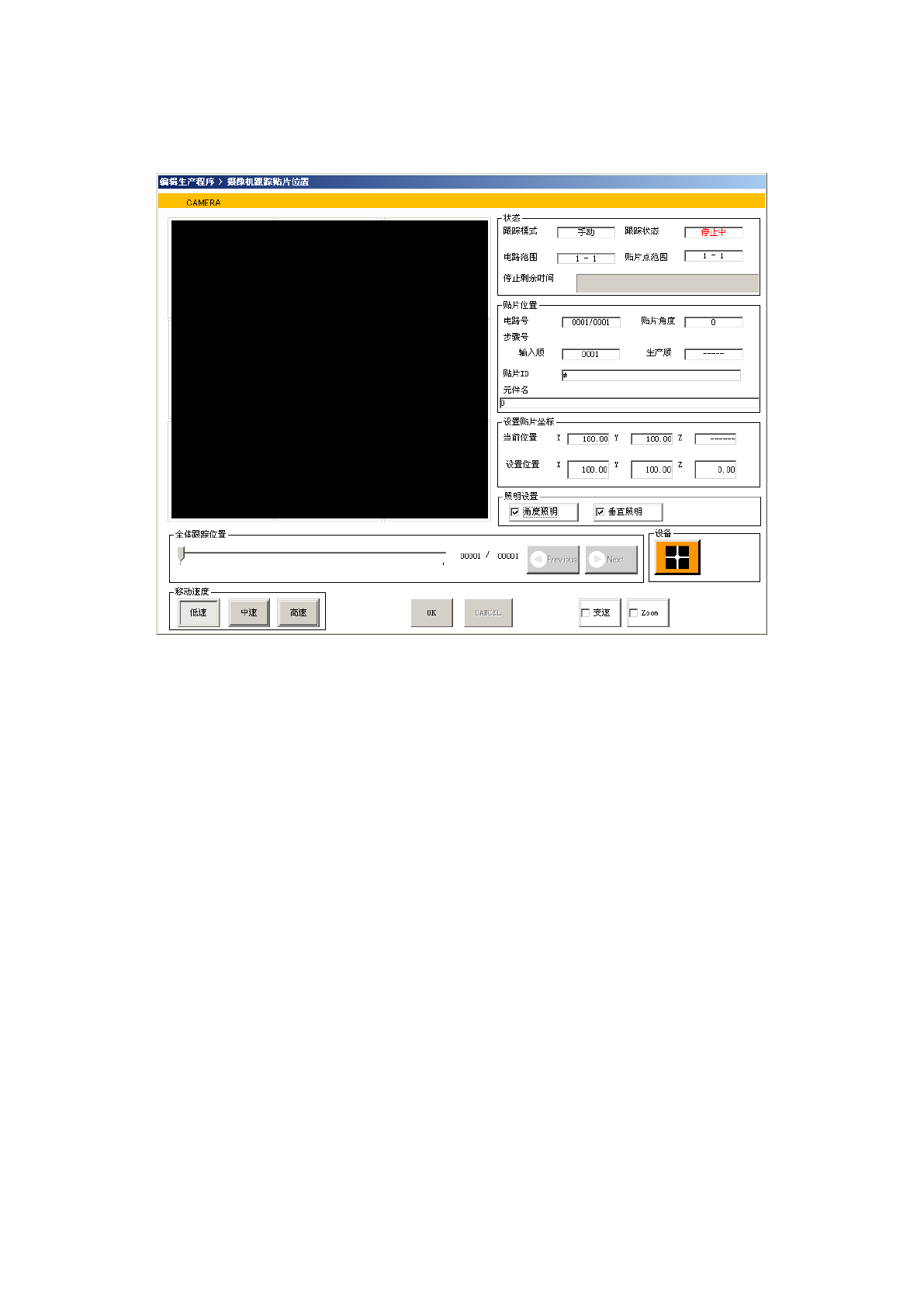 操作手册Ⅱ 2) 贴片位置 显示当前的贴片 位置的信 息。 a) 电路号 显示跟踪中的电 路 / 电路总数。 b) 贴片角度 显示跟踪中的贴 片角度。 c ) 步骤号 显示输入顺(序 )和生产 顺(序)。 d ) 贴片 ID 显示跟踪中的元 件 ID 。 e ) 元件名 显示跟踪中的元 件名称。 3) 照明设置 选择要点亮的O CC照明 的类型。 可选择 “ 角度 ” 、 “ 垂直 ” 、 “ 外圈 ” 。 “ 外圈 ” 按钮, 仅当设…