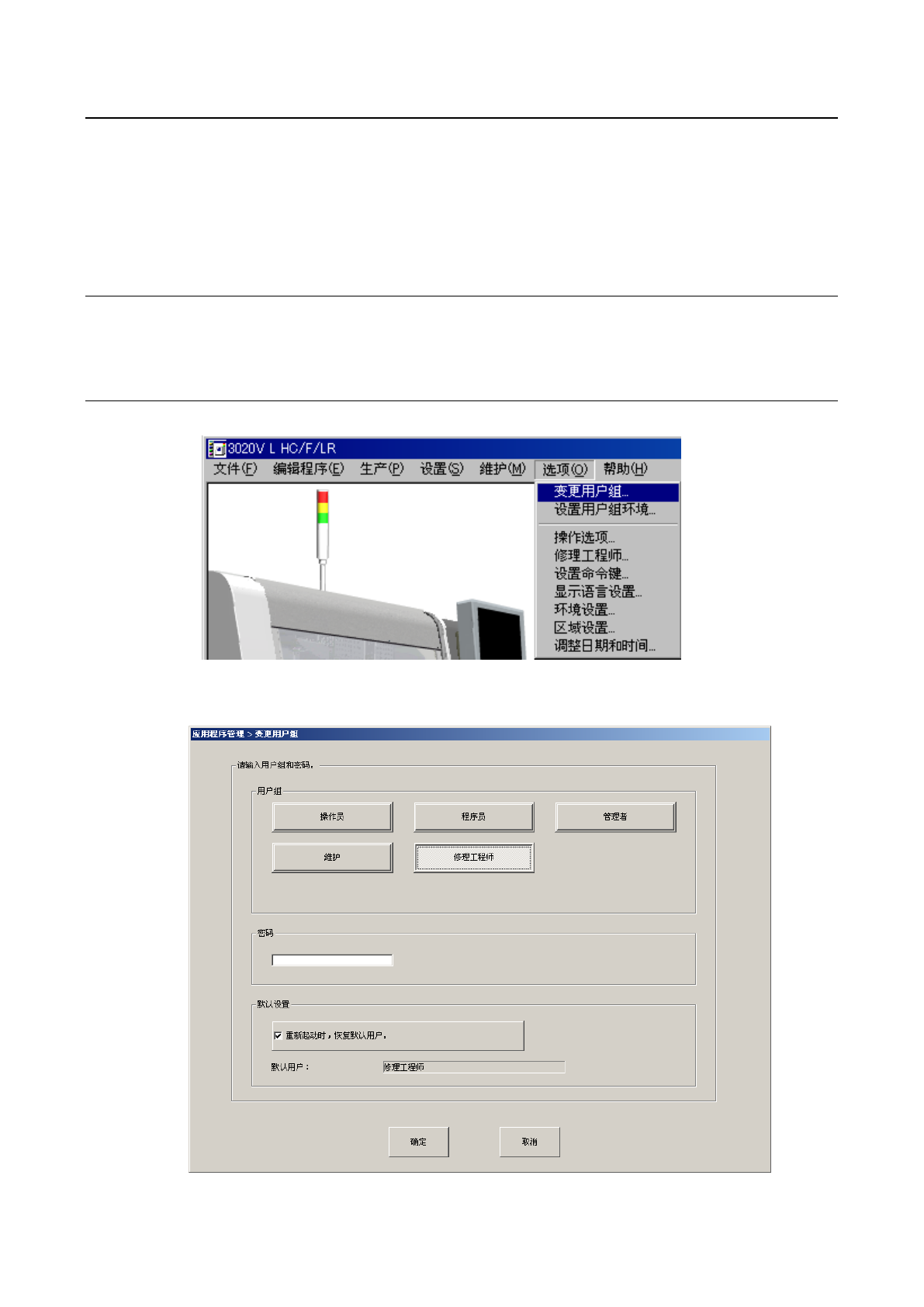 选中后,将显示按“3-2-1-2 设置用户组环境”的“设置默认用户”中所设置的用户组。没