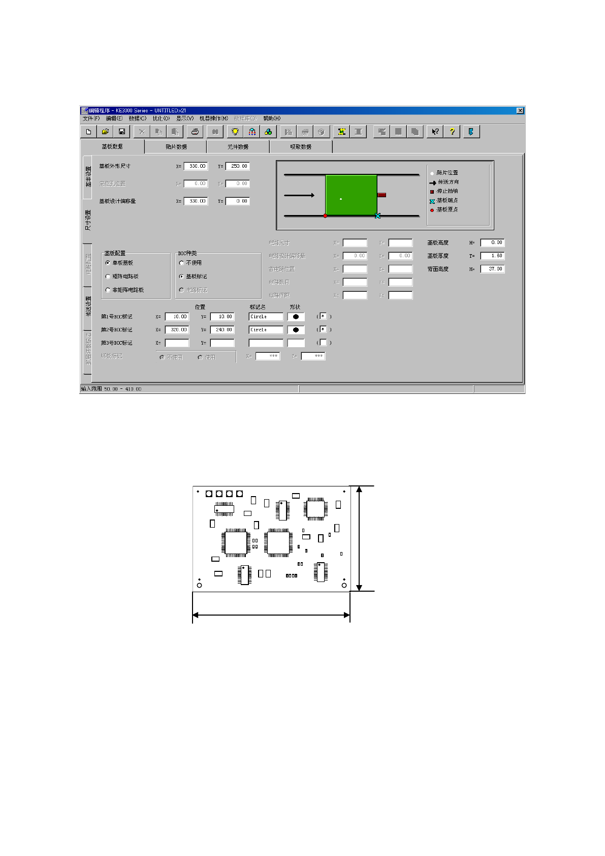 在生产程序中,用坐标来表示基板上的元件及标记的位置。