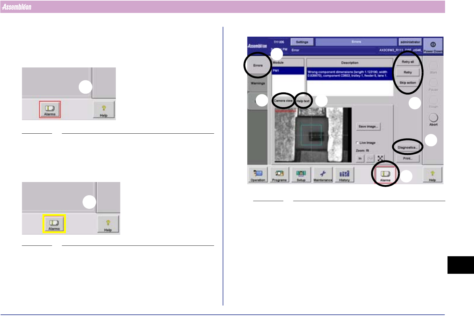 警报按钮周围显示的彩色边框表示机器或流程出现故障: