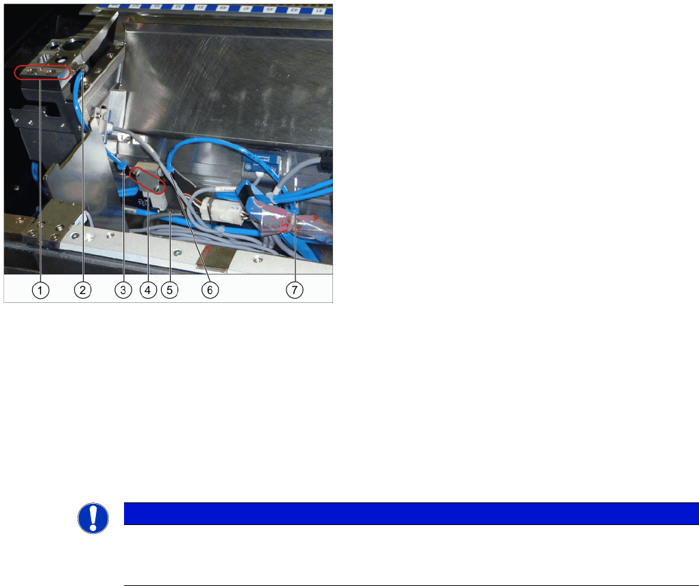 zum Pipettenwechsler (5) und am Pneumatikanschluss des Pipettenwechslers (6) an oder
