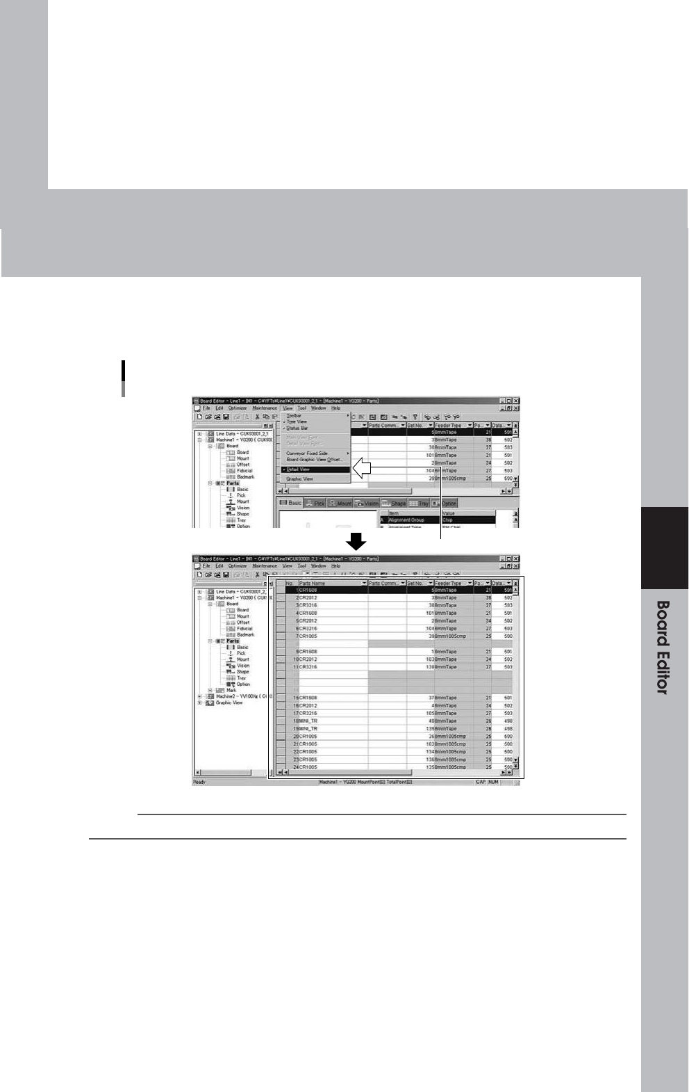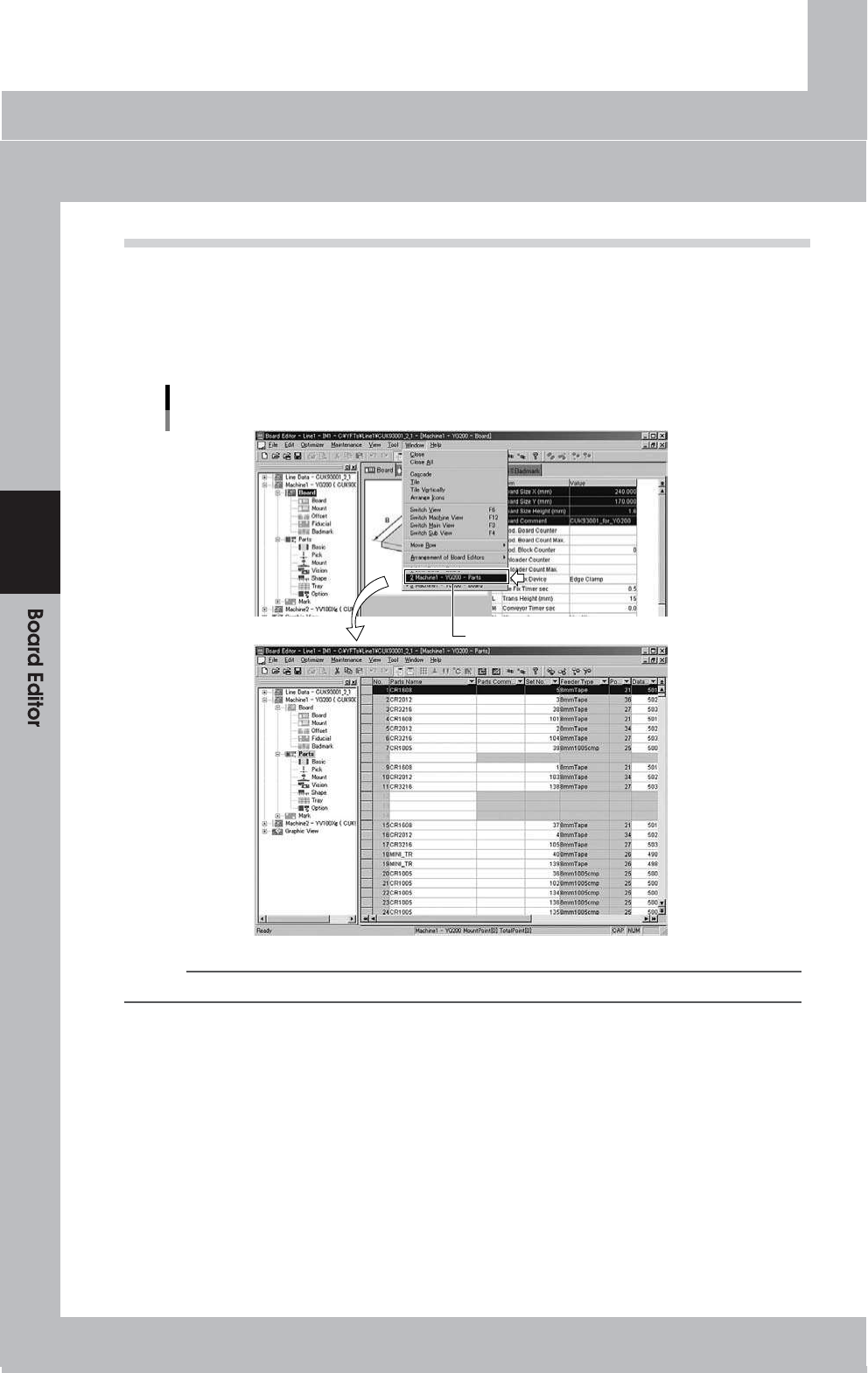 板编辑器显示所选板数据的每个信息项(板,零件和标记信息)