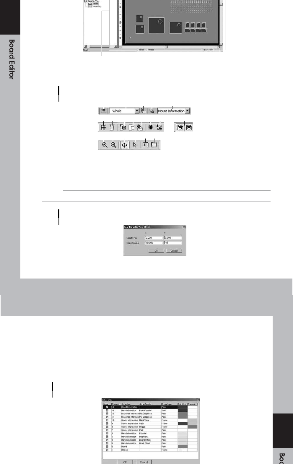 3 板子图形窗口 64 34 9- S0- 00 ● 图 形 工 具 栏 图形工具栏 1 个 6 2 个 3 4 5 7 8 9 10 11 12 13 1 个 4 15 16 17 18 19 64 35 0- S0- 10 1 个 。 全 部 偏 移 设 置整 个 图形 视 图指 示 的偏 移 值。 ( 请参 阅 3. 4 图形 视 图指 示 偏移 设 置) 选 择板 子 固定 方 法, 然 后在 相 应的 字 段中 输 入板 子 …