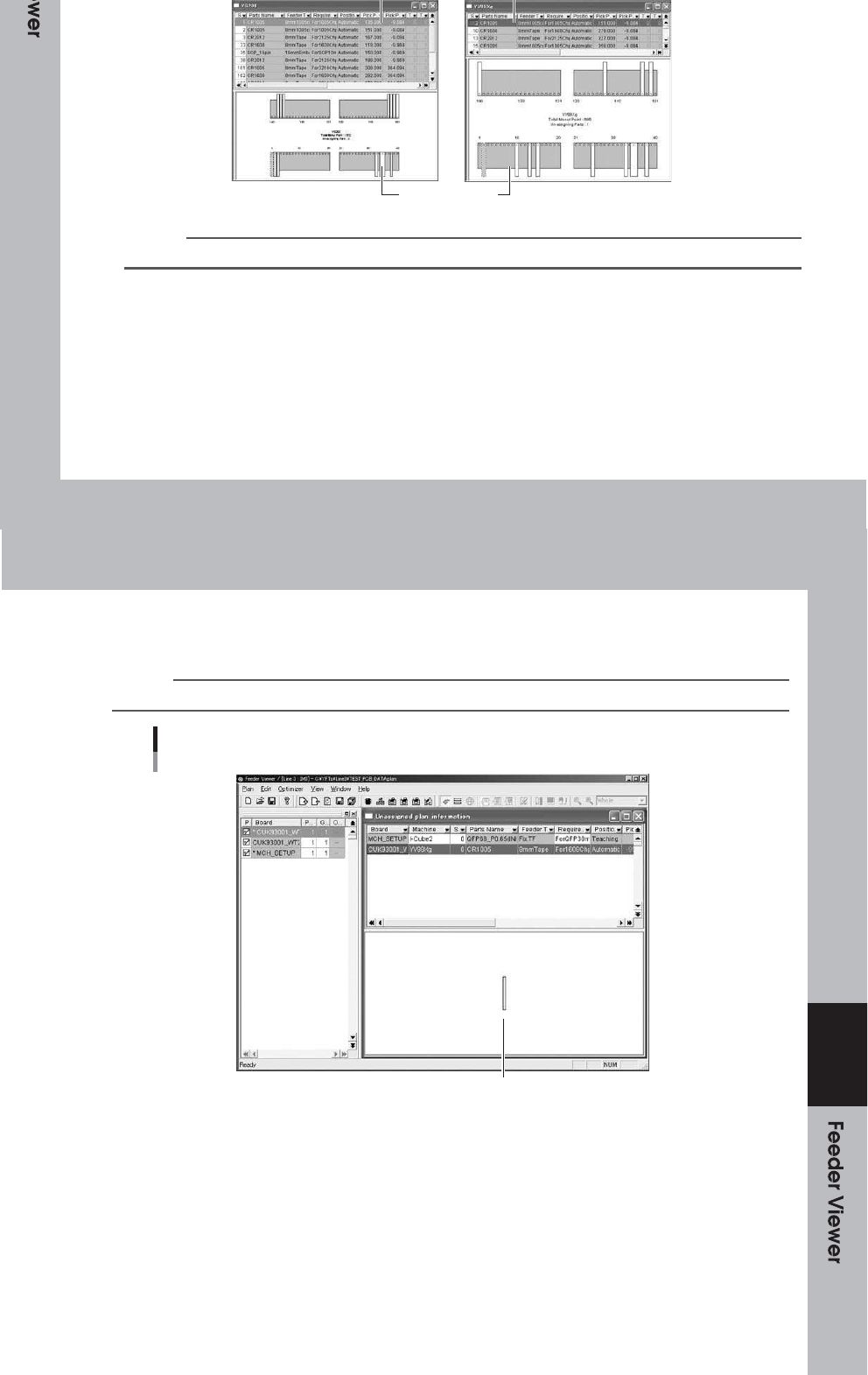 进纸器设置布局 64 41 1- S0- 00 参考 窗口的内容可以切换。有关更多详细信息,请参阅稍后说明的 “ 计划操作工具栏 ” 。 4-8 4 。 [ 未 分 配 的 计 划 信 息 ] 按 钮 从 进纸 器 中的 电 路板 数 据中 检 索尚 未 设置 进 纸器 设 置位 置 的零 件 上的 信 息, 以 显示 这 些信 息 。 生 产板 清 单。 参考 该按钮与 “ 窗口 ” 菜单中的 “ 未分配的计划信息 ” 命令具有相同的…