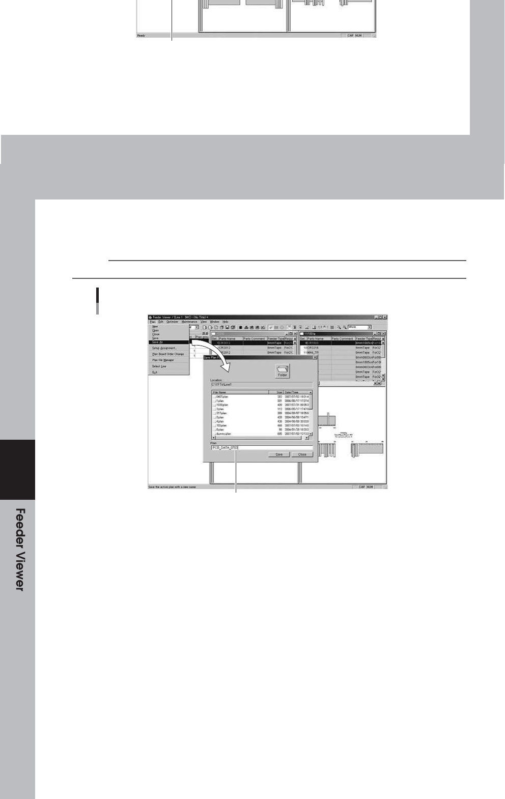 4-20 2 个 . 3 打 开 计 划 文 件 要 打开 已 经 注册 的 计 划文 件 , 请按 照 下 列步 骤 操 作。 1 个 从 计 划 文 件中 选 择 “ 打 开 ” 。 在 “生 产 播放 ( P ) ”菜 单 上, 单 击“ 打 开设 置 ( O ) ”。 出 现“ 选 择计 划文 件 ”对 话 框。 参考 单击工具栏上的 [ 打开 ] 按钮执行相同的操作。 选择“打开”命令 4 64 43 3- S0- 00 2 …