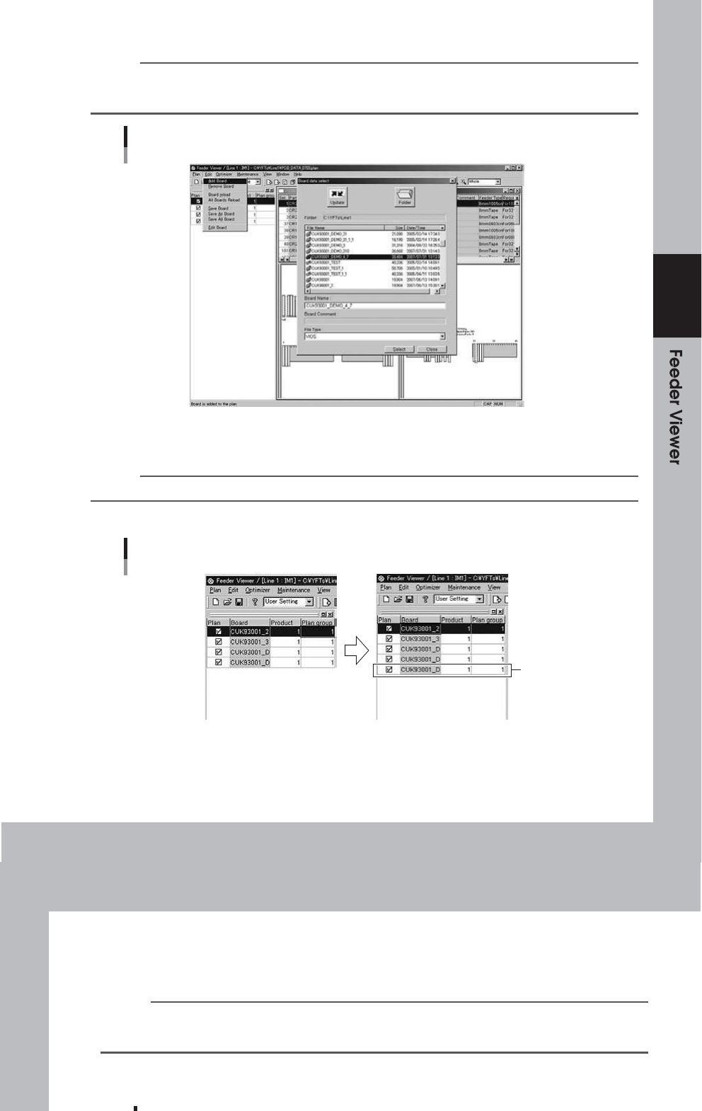 3 . 编 辑 在 数 据 上 的 计 划 信 息 屏 幕 您 可以 在 计 划 信息 屏 幕 上编 辑 板 数 据。 3 . 1 切 换 生 产 线 您 可以 在 F ee d e r V i ew 仍 在 的情 况 下 将当 前 选 定的 生 产 线切 换 到 另一 条 生 产线 手 术。 请 注 意, 您 必 须首 先 关 闭当 前 选 择的 行 。 1 个 从 计 划 菜 单中 选 择 “ 选 择 线 ” 。 出 现“ 选 择编…