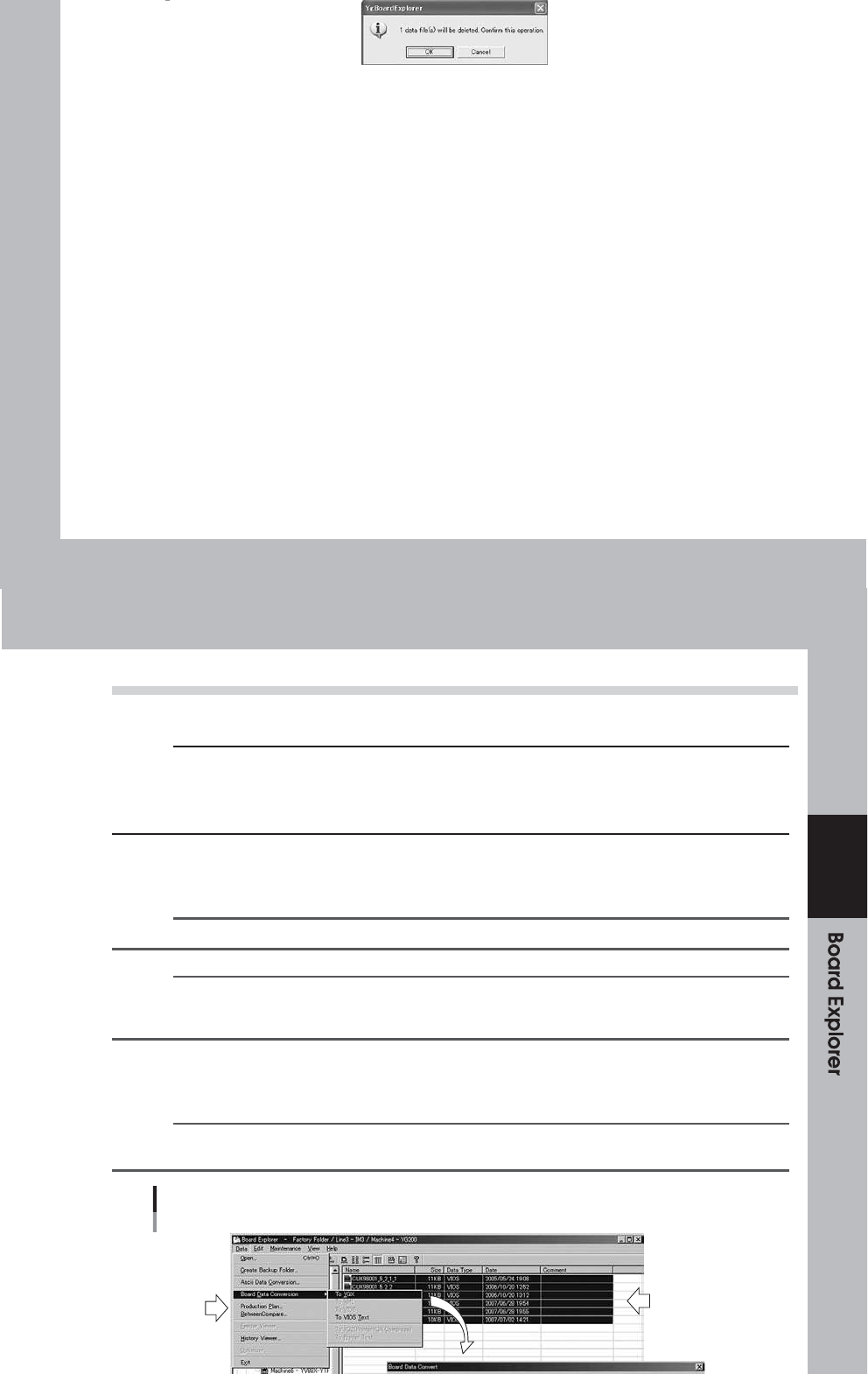复制的董事会数据已注册。 64 24 1- S0- 00 2 个 -45 5 . 1 . 4 删 除 单 板 数 据 要 删除 板 数 据, 请 按 照下 列 步 骤操 作 。 1 个 2 个 选 择 单 板 数据 。 在 树形 视 图 中 选择 生 产线 或 机器 , 以便 要 删除 的 电路 板数 据 显示 在 主菜 单 中 看 法。 然 后 选 择要 删 除的 单 板数 据 。 删 除 选 中 的单 板 数 据 。 1 个 。 从…