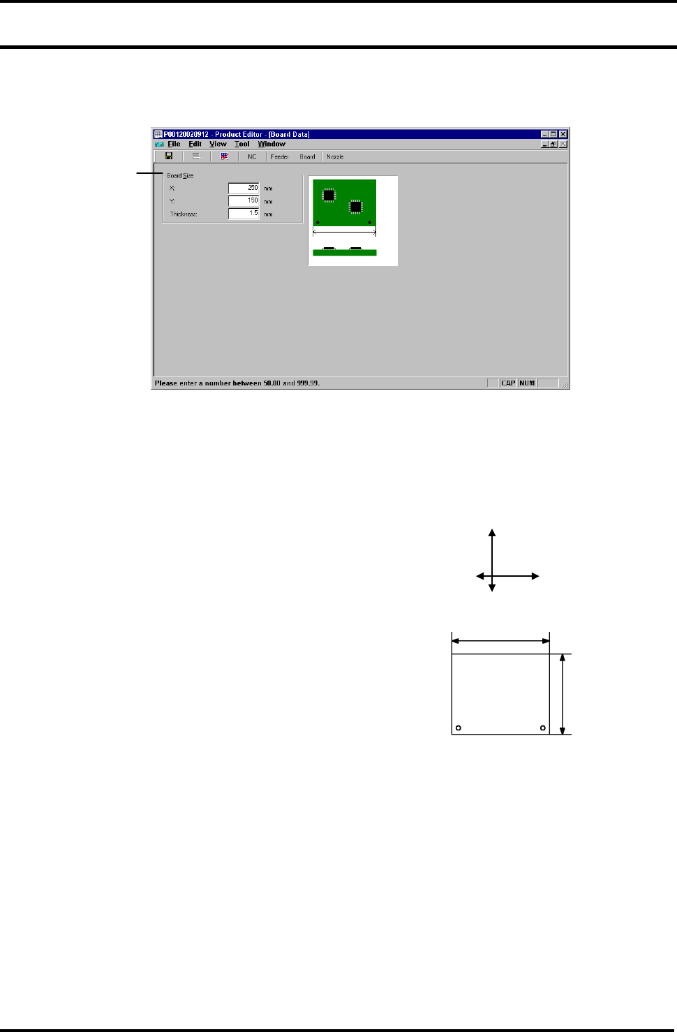 设定基板在 X、Y 方向上的尺寸。