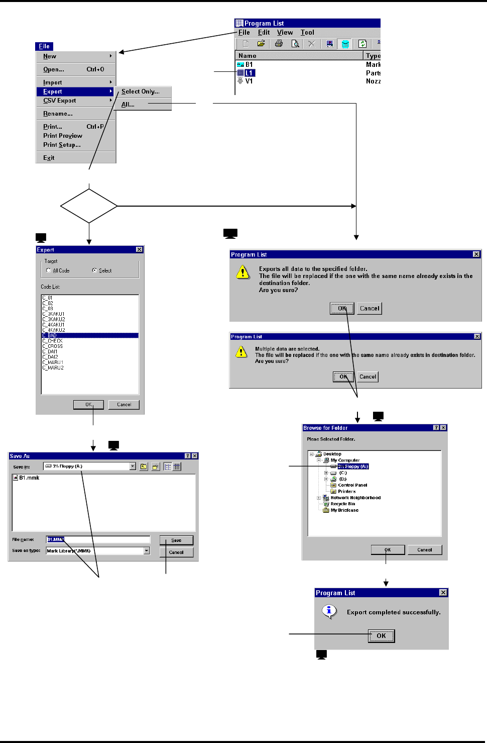 元件程序库(“L1.PRT.CSV”) 标记程序库 (“B1.MMK.CSV”)