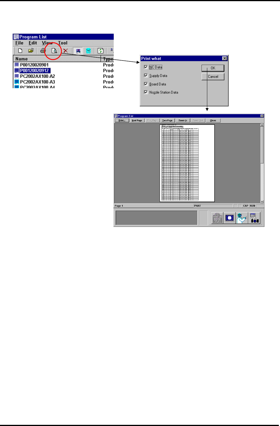 BM122 编程手册 7.4 打印 E34PCC-4 0-040-B0 7.4-3 7.4.2 打印预览 ‘打印预览’按钮允许 您在打印时检 查数据文件的预览 效果。