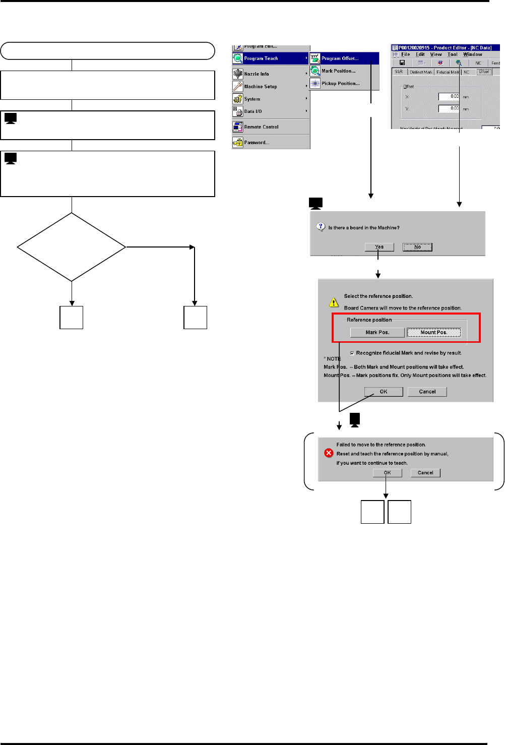 BM122 编程手册 8.2 程序补偿 E34PCC-3F-0 20-B0 8.2-3 8.2.2 补偿示教的步 骤 : ‘Select referen ce positio n ’ ( 选择基准位置 ) 3. Choose <Mar k Pos.> or <M ount Pos.> <OK> (选 择 ’ 标记位 置 ’ 或 ’ 贴装位置 ’ ) : ‘Confir mation of PC b…