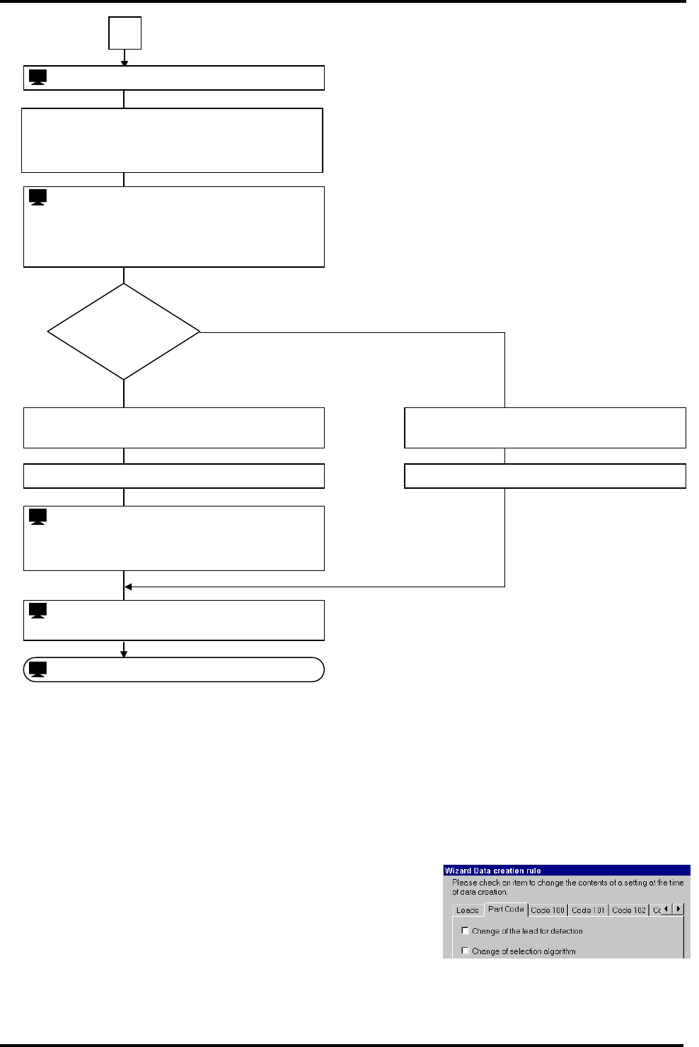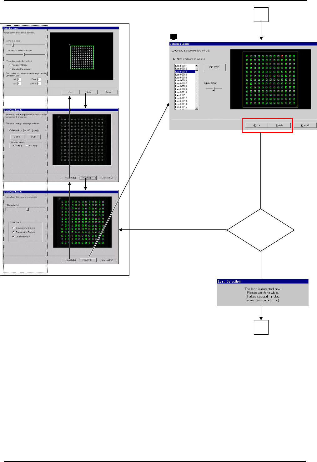 BM122 编程手册 8.8 创建元件数据 E34PCC-3F-0 90-B0 8.8-10 3 检测检查 拔出不合格 22. <Back> ( 返回 ) 拔出 OK 20. <Finish> ( 完成) : ‘Detection Leads’( 检测导线 ) = 提示 = 6 = 提示 = 7 = 提示 = 8 4 24. 24. 24. 23. 22. 22.