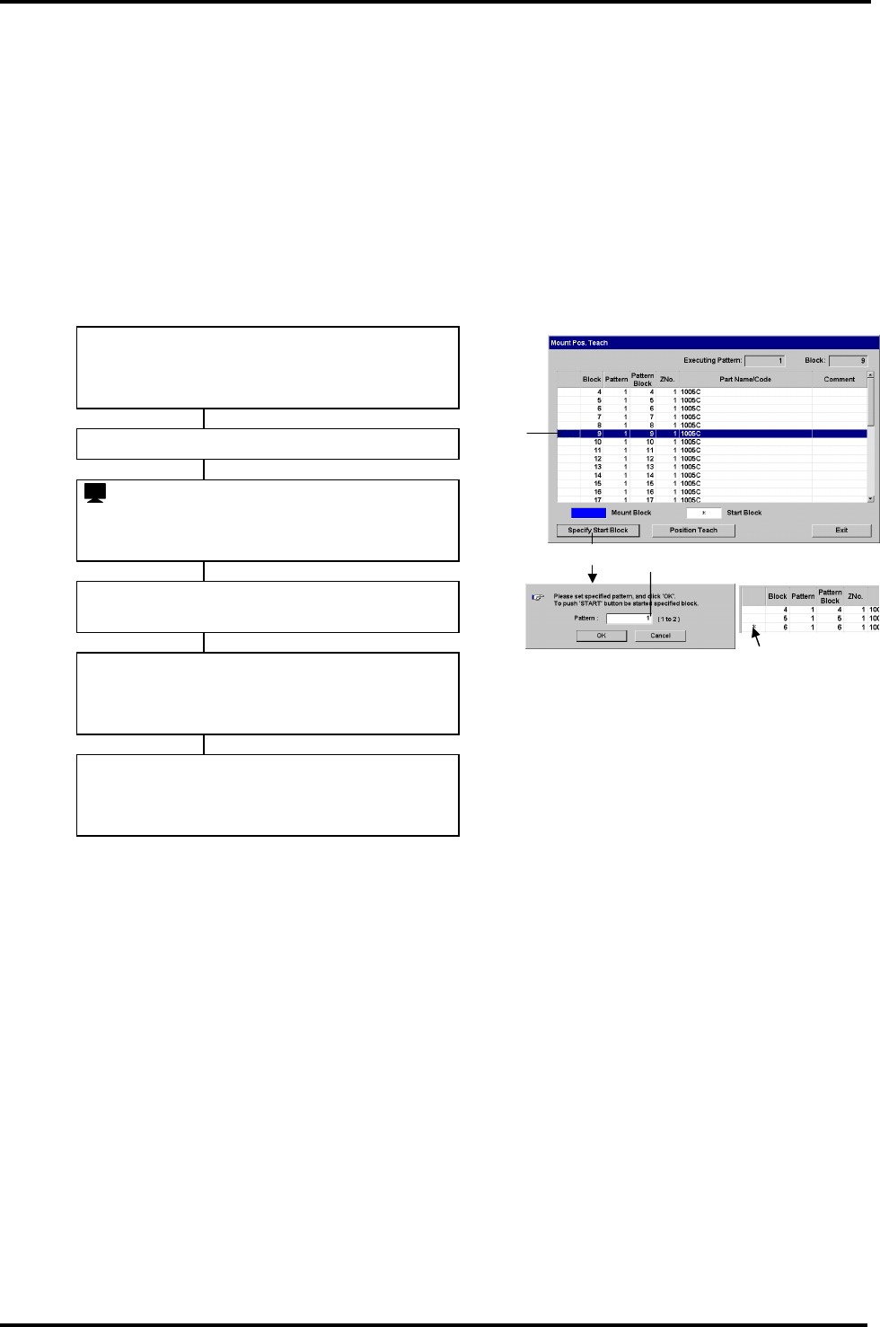 如果使用<Start Block>(开始程序块) 按钮指定了一个开始程序块之后,尝试了<Mount Pos. Teach>(贴装位