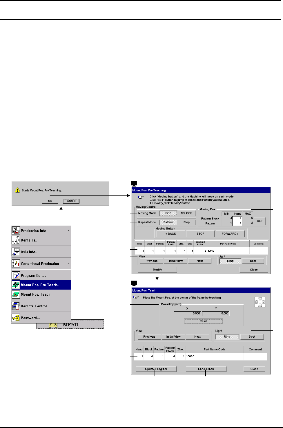 通过进行贴装位置示教和焊盘示教来设定生产程序中 NC 数据的 X/Y 坐标(贴装位置)。