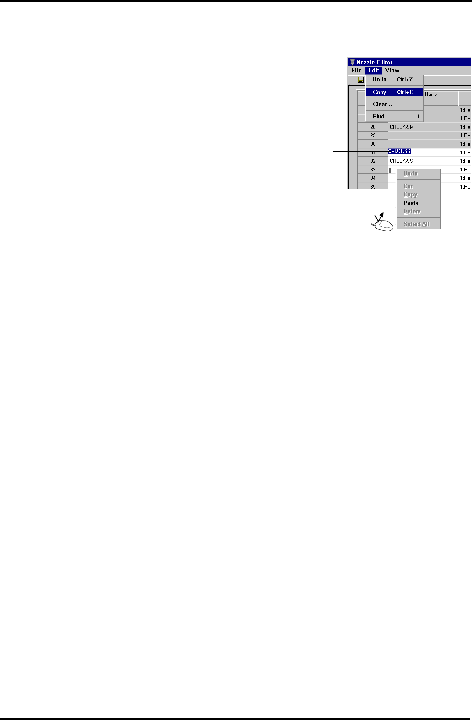 数据复制后,将光标移动到吸嘴名称栏内,通过弹出的菜单,选择<Paste 粘贴>来输入复制的名称。