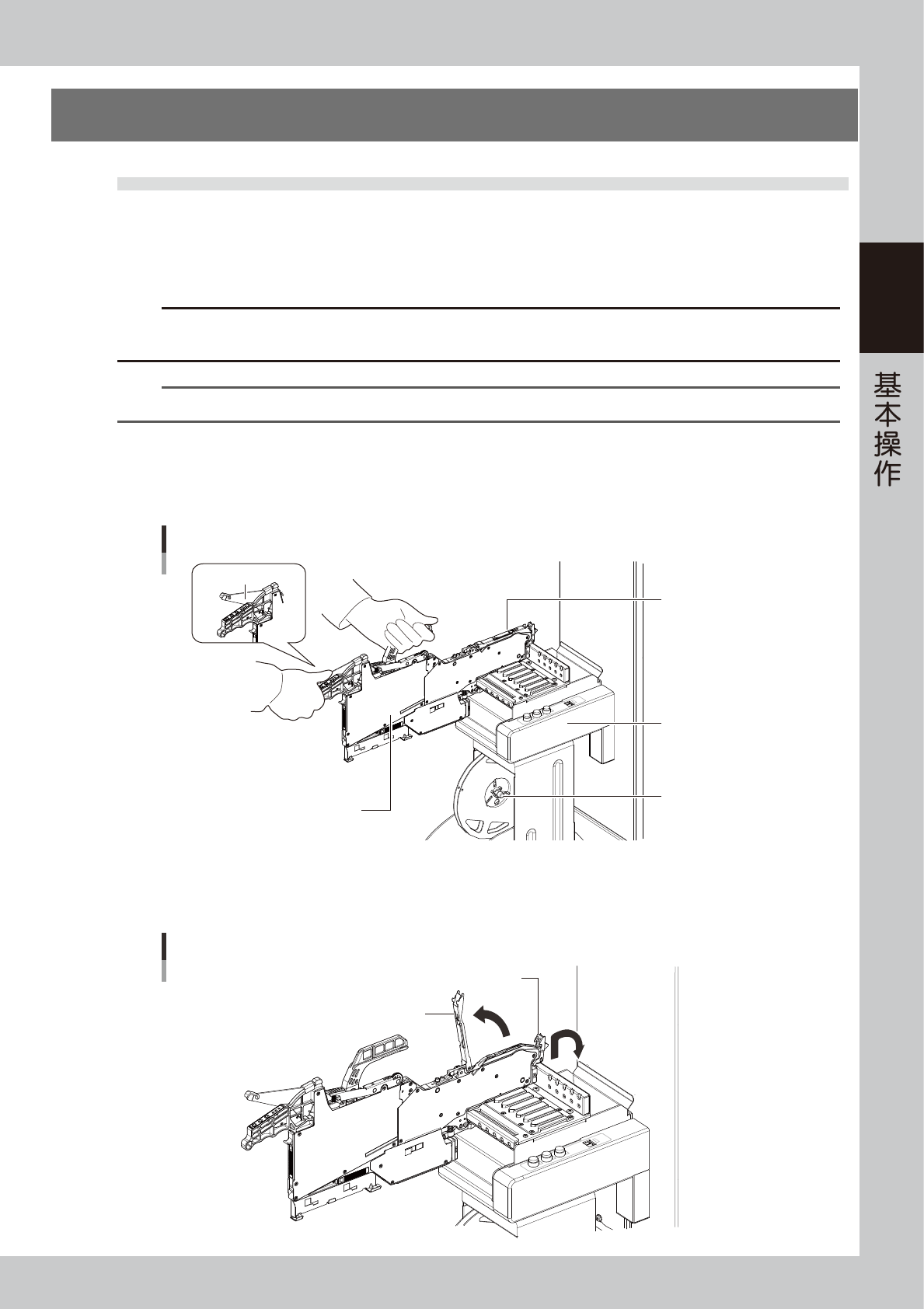 2-41 2 4. 带装元件的准备 4.1 带式送料器 4.1.1 带装元件的安装 下面,以 ZS 电动送料器为例介绍将带装元件装入送料器的方法。 关于 SS 电动送料器的详细使用方法,请参照《SS FEEDER 用户操作手册》 。 c 注意 安装带装元件时,请务必使用上料台或离线上料台安装。直接在贴片机上安装,可能会使料带上的元件掉落到贴片机内部。因此, 请勿直接在贴片机上安装带装元件。 n 要点 安装带装元件时,请务必先确认压…