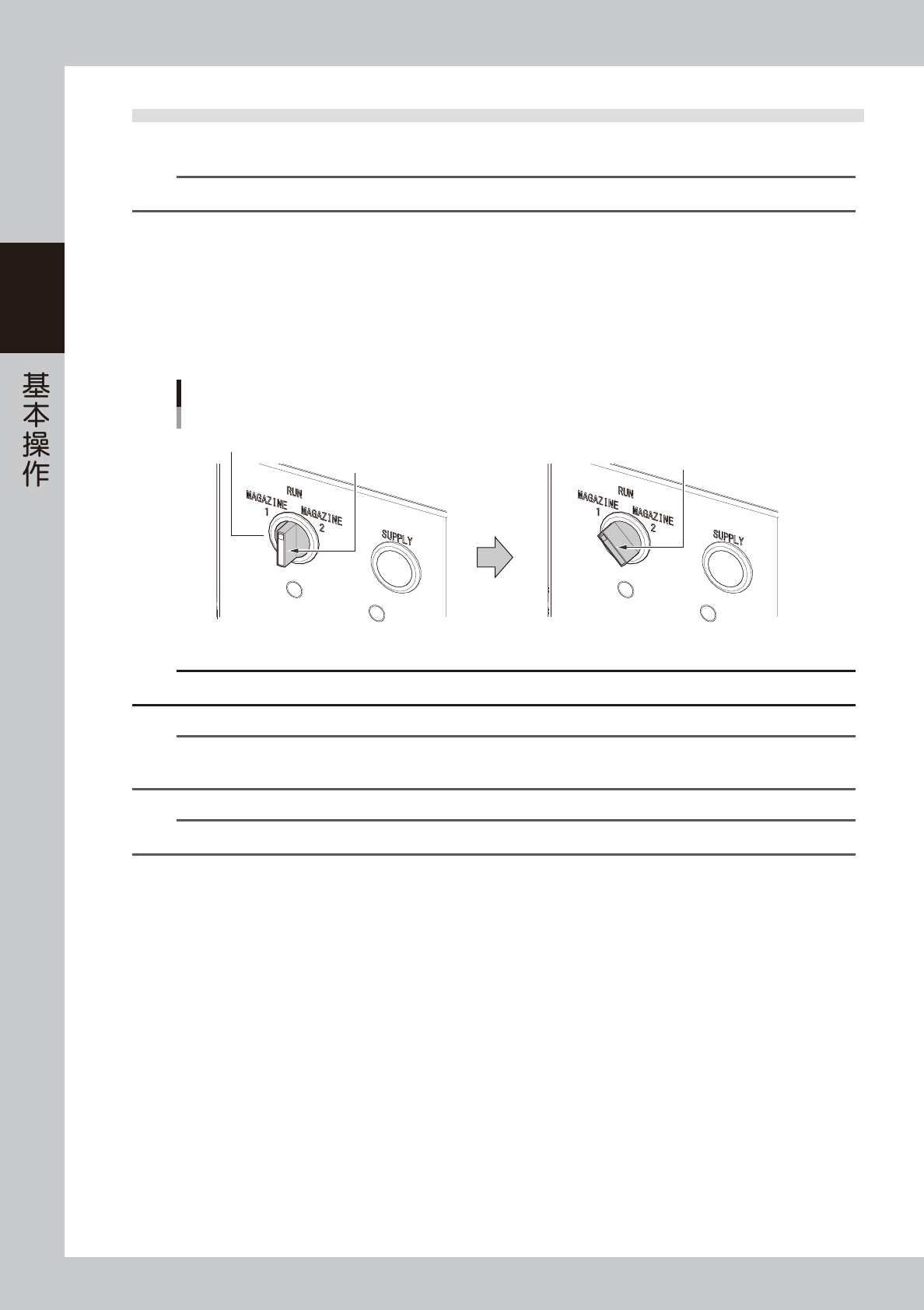 将载料箱开关旋至“MAGAZINE 1”或“MAGAZINE 2”,选择载料箱。