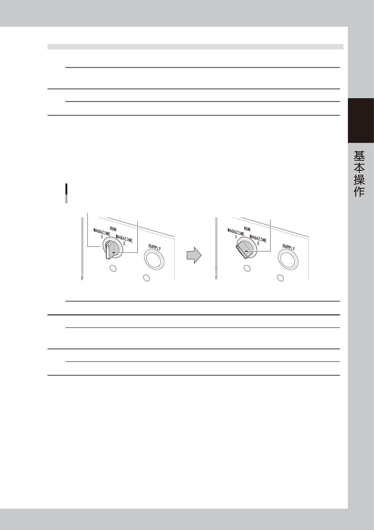 将载料箱开关旋至“MAGAZINE 1”或“MAGAZINE 2”,选择载料箱。
