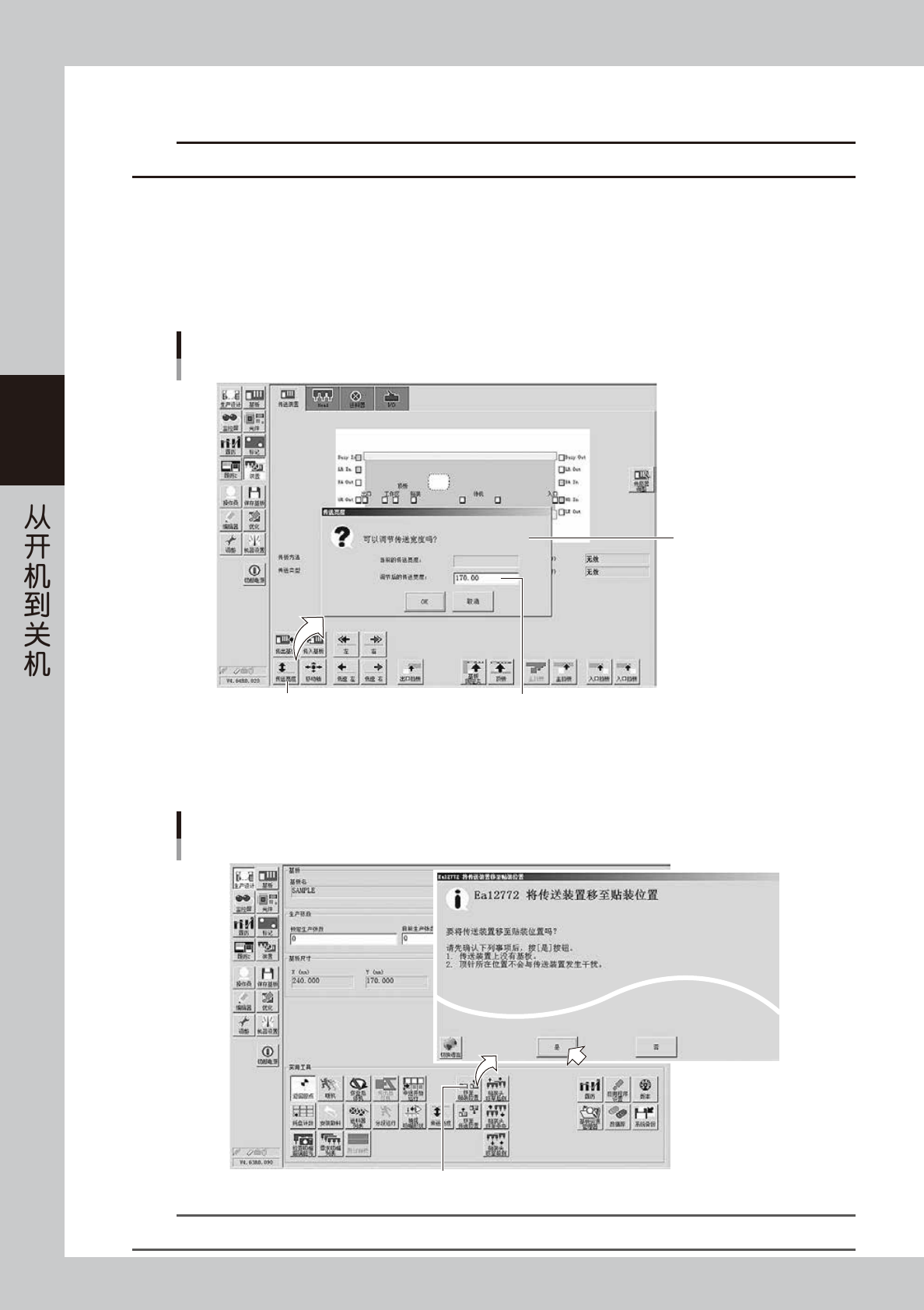 3. 双段输送台机型时,需使输送台 1、输送台 2 的顶板都上升。