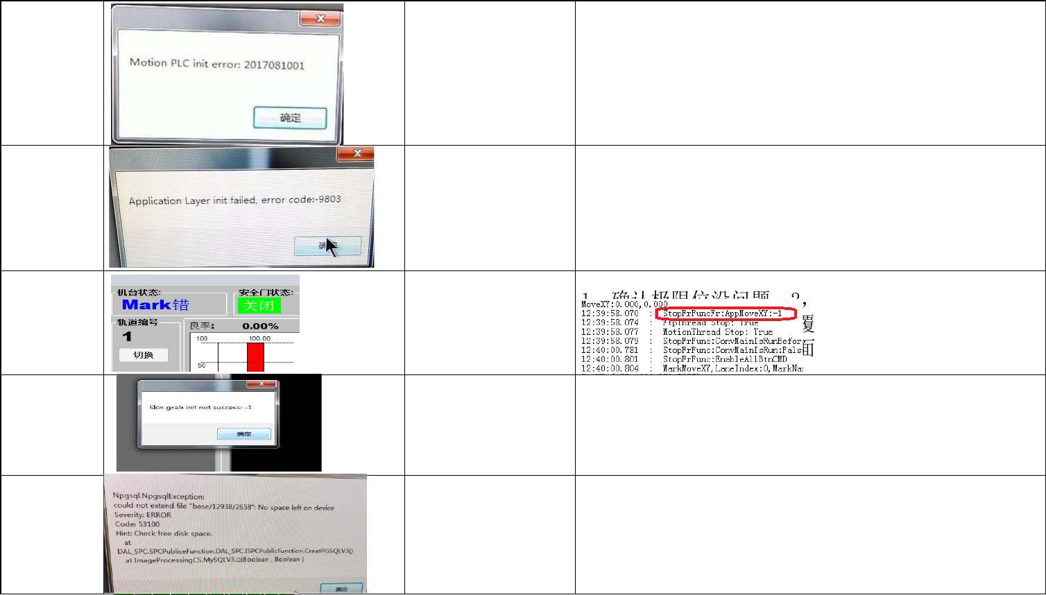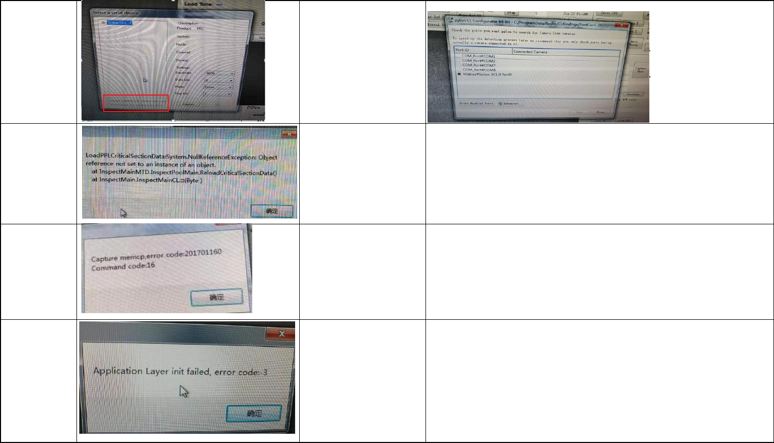 125 打开UI软件报此信 息 在启动程序中,查找相机,保存时 跳出左图对话,将 下面两窗口选上 126 UI报错 电脑重启可以了,应该是PLC网线接触问题 127 3 DTOOL拍照报错 510C报触发错误,换了背板上的那块小板后OK 128 UI报错 bin文件损坏了,重新装版本后可以了