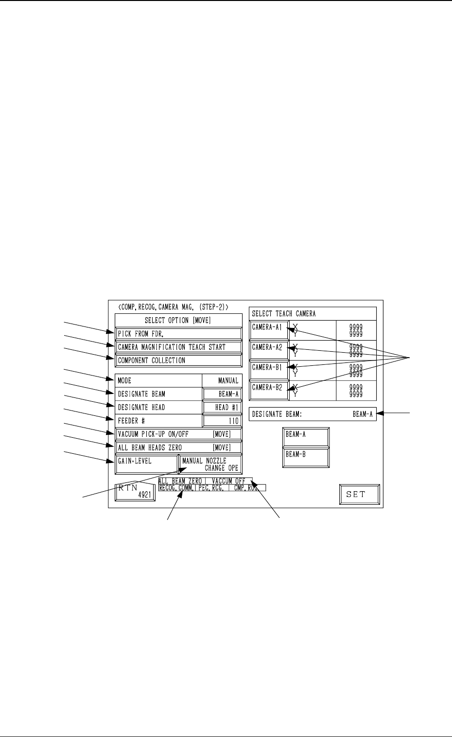 Tg0249-PM-MM 6. 2 COMP . RECOG. CAMERA MAG. (STEP-2) Display • This display allows teaching the magnification of the component recogni- tion camera. The offset values are calculated by recognizing the printed pattern on …