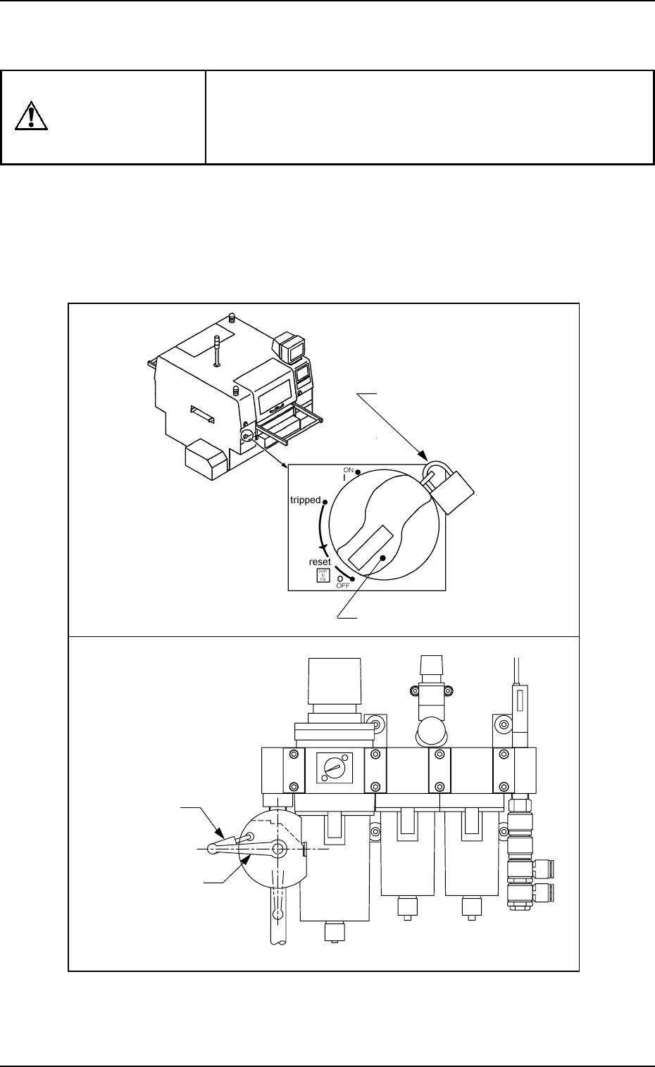 W ARNING Precautionary Measures in Maintenance and Inspection Work 0004-002 8 Tg0249-PM-MM Before performing maintenance work, turn off the power switch and the air source of the machine and lock the power breaker using …