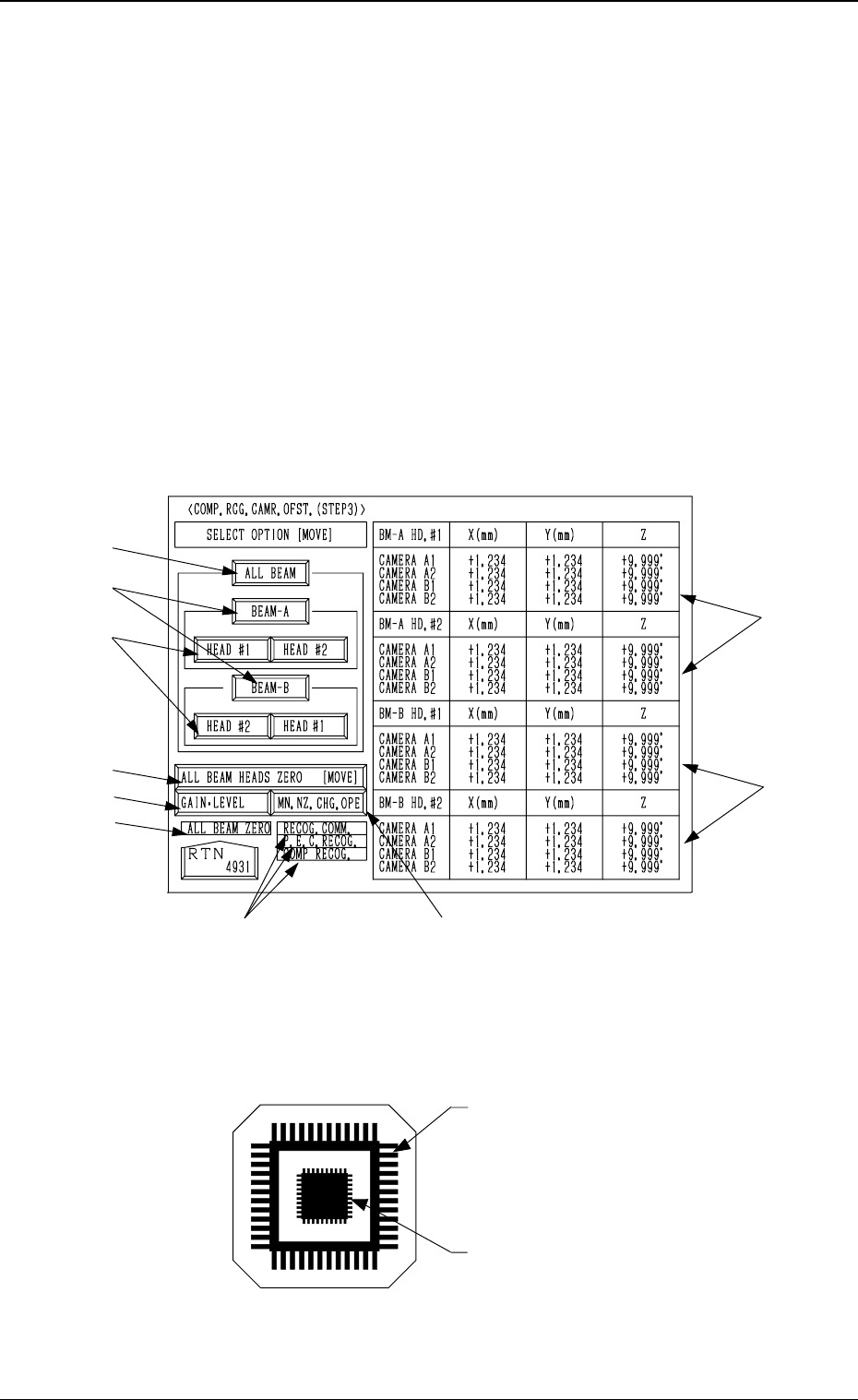 Tg0249-PM-MM 6.3 COMP . RCG. CAMR. OFST . (STEP3) Display • This display allows teaching the offset data of the component recognition camera. The offset values are calculated by recognizing the printed pattern on the jig…