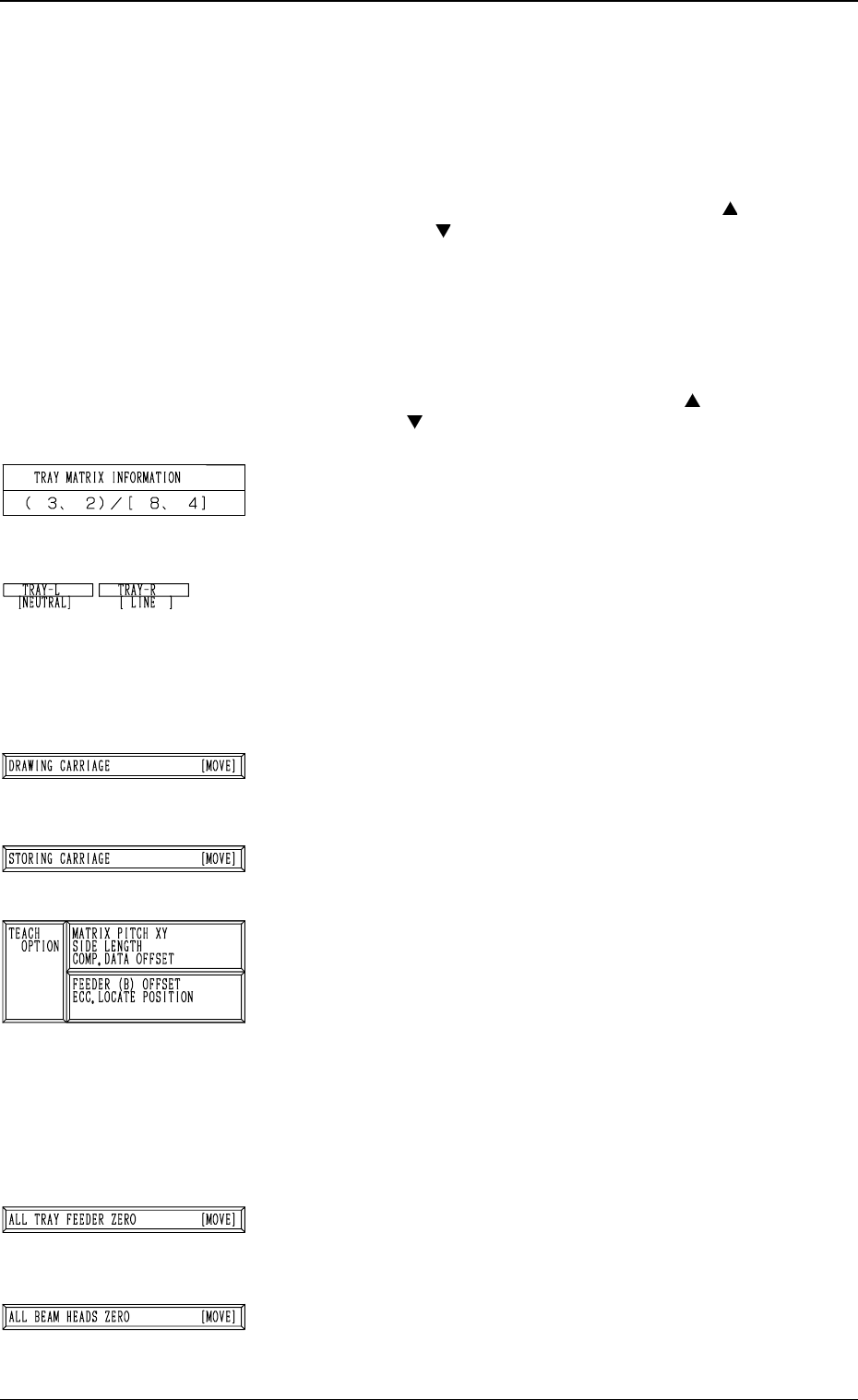 Tg0249-PM-MM *5 *7 *6 *8 *2 *9 *3 *4 *10 *1 1 *7 *1 *12 6. TEACH OFFSET Display Fig. 3.76 6.12 PICK-UP LOCA TION (TRA Y) Display (Option) • This display allows the teaching operations on the pick-up position offset of th…