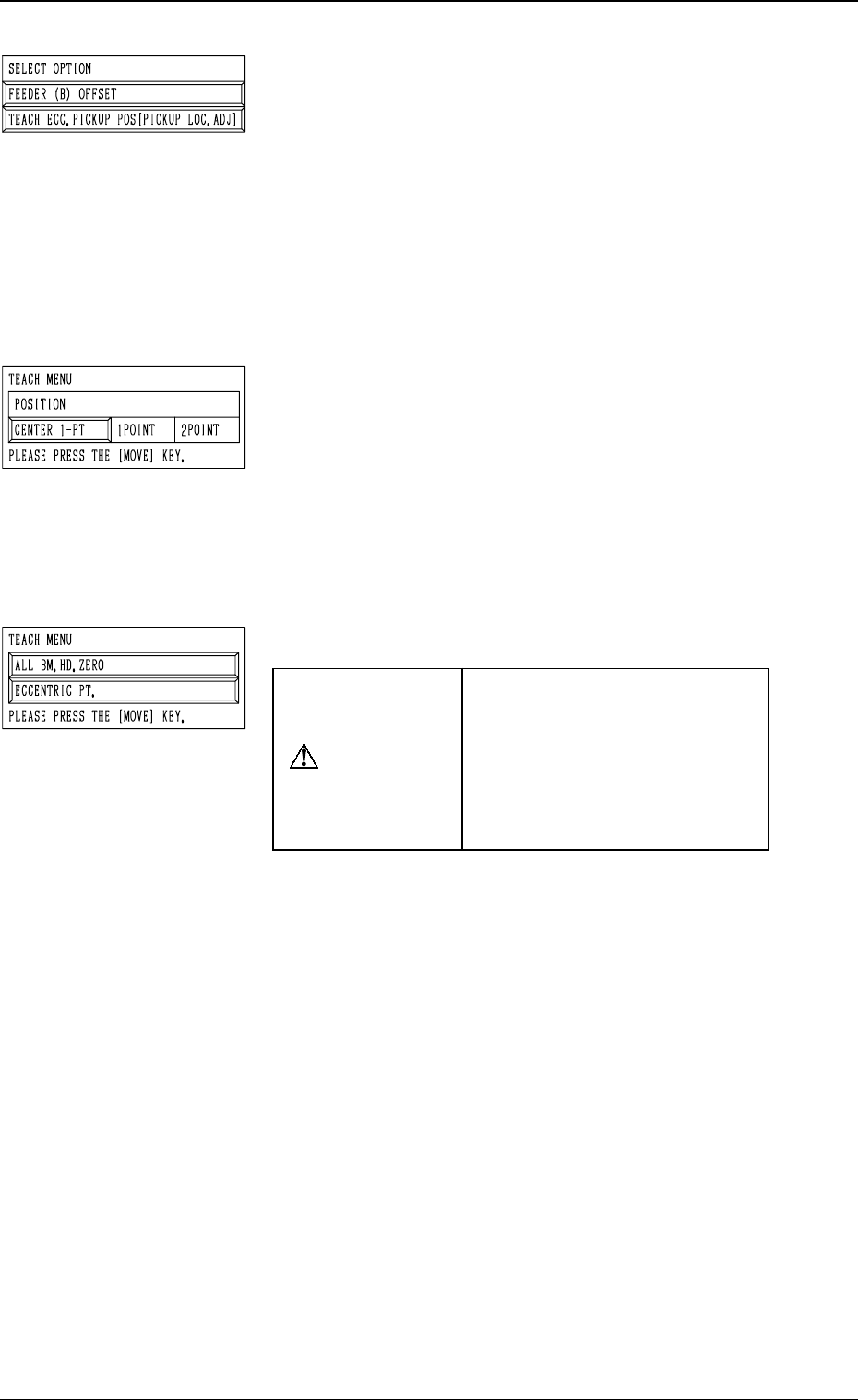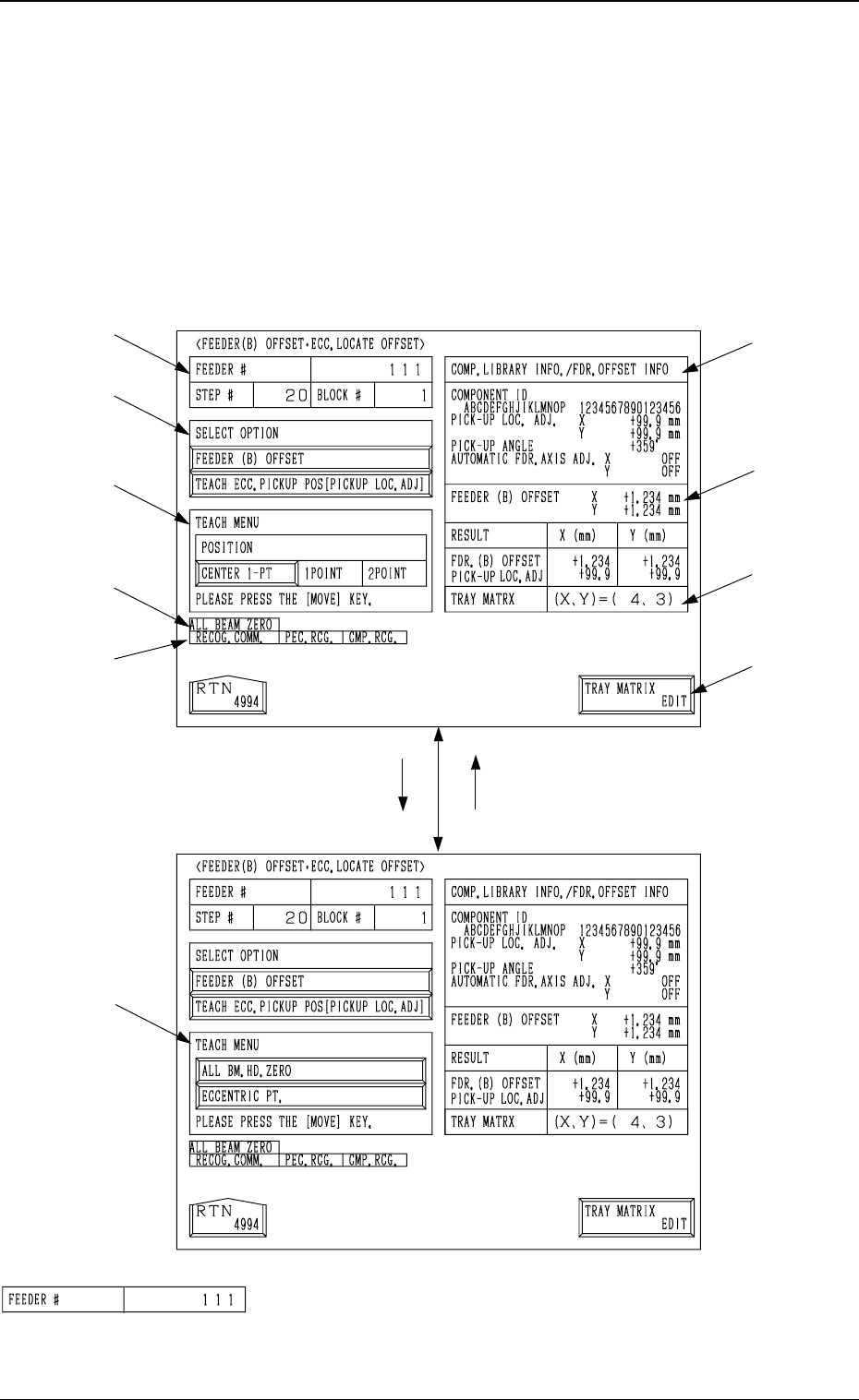 • This display allows the teaching operation on the feeder (B) offset and ec-