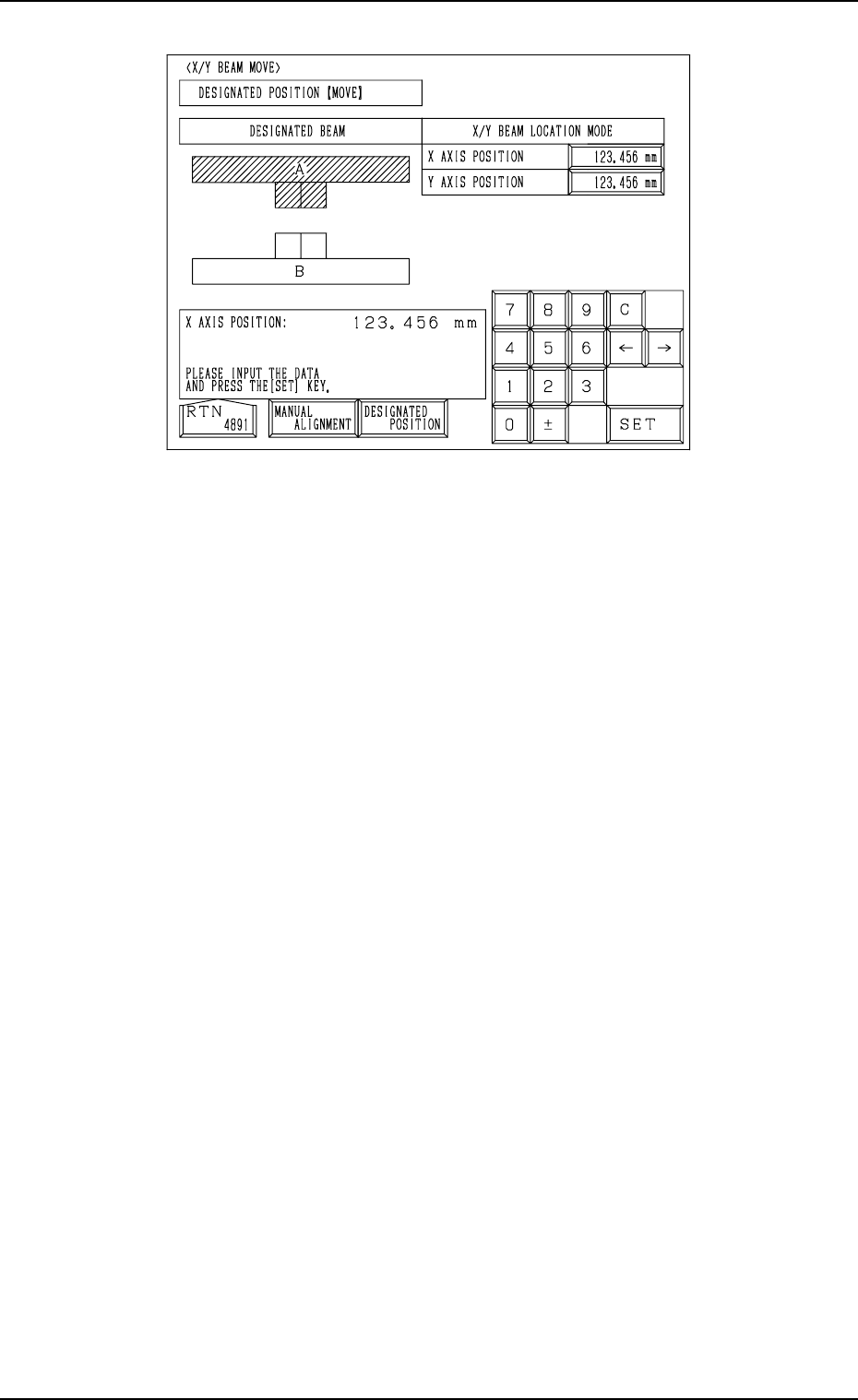 (3) Open the “X/Y BEAM MOVE”display (Fig. 3.86-2) and follow the steps