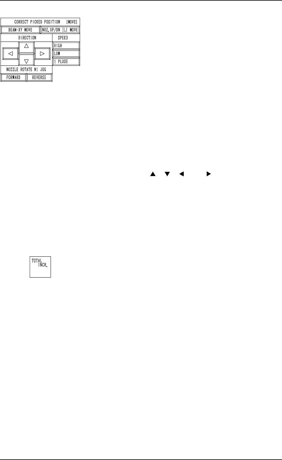 Tg0249-PM-MM 7. DEVICE TEST Display 9910-001 3-145 *4 CORRECT PICKED POSITION [MOVE] The posture of the picked component can be corrected while the movement is being checked on the recognition moni- tor . [BEAM-XY MOVE] …