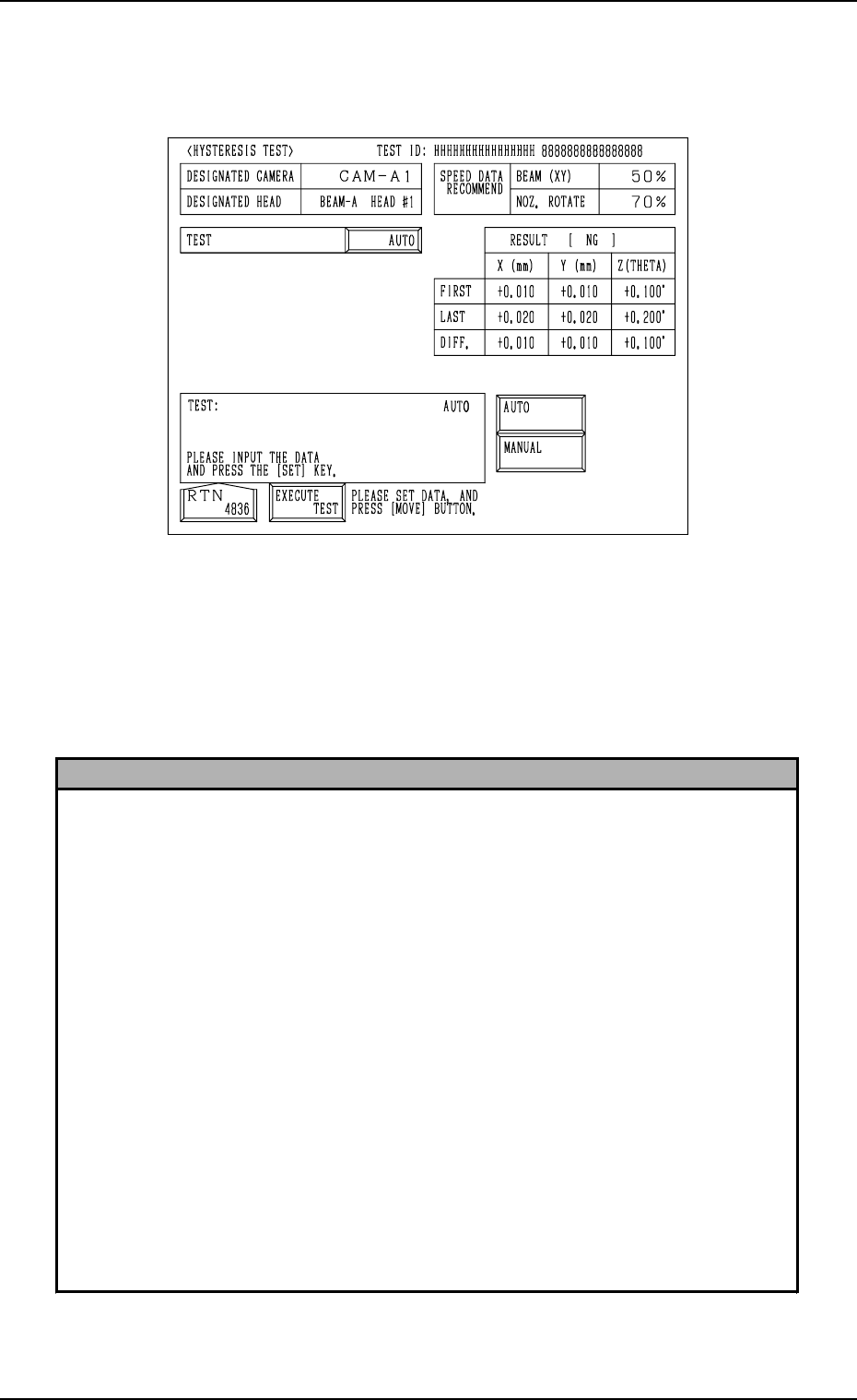 When “AUTO” is set in the “TEST” data box at the “HYSTERESIS TEST”
