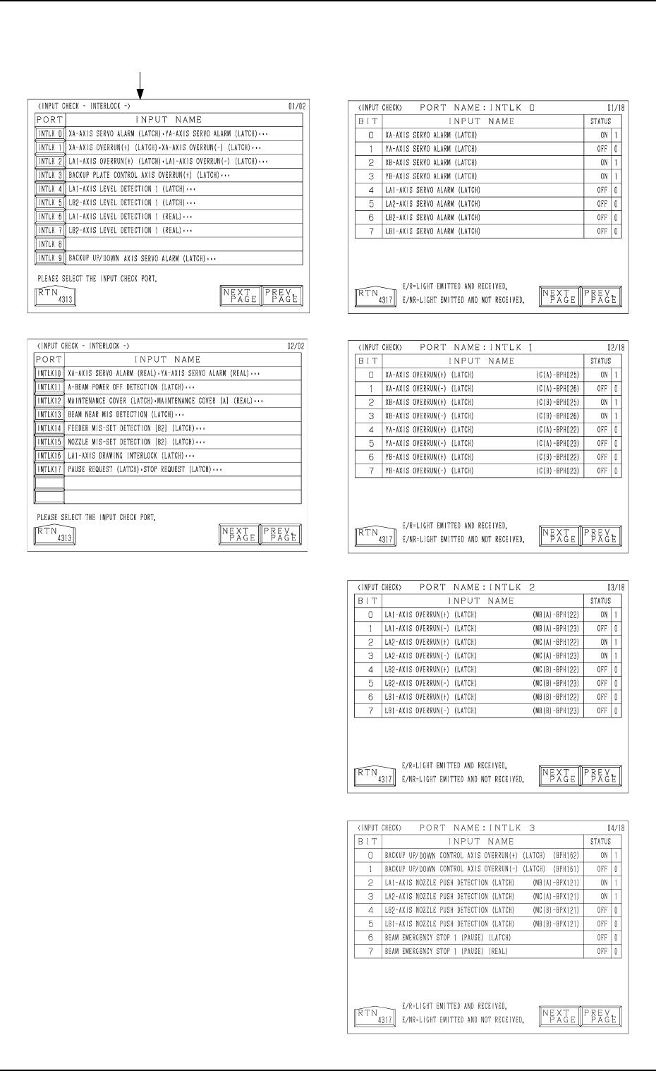 Tg0249-PM-MM 8. DEVICE CHECK Display 9910-001 3-167 “INPUT CHECK” Display (Fig. 3.104) [INTERLOCK]