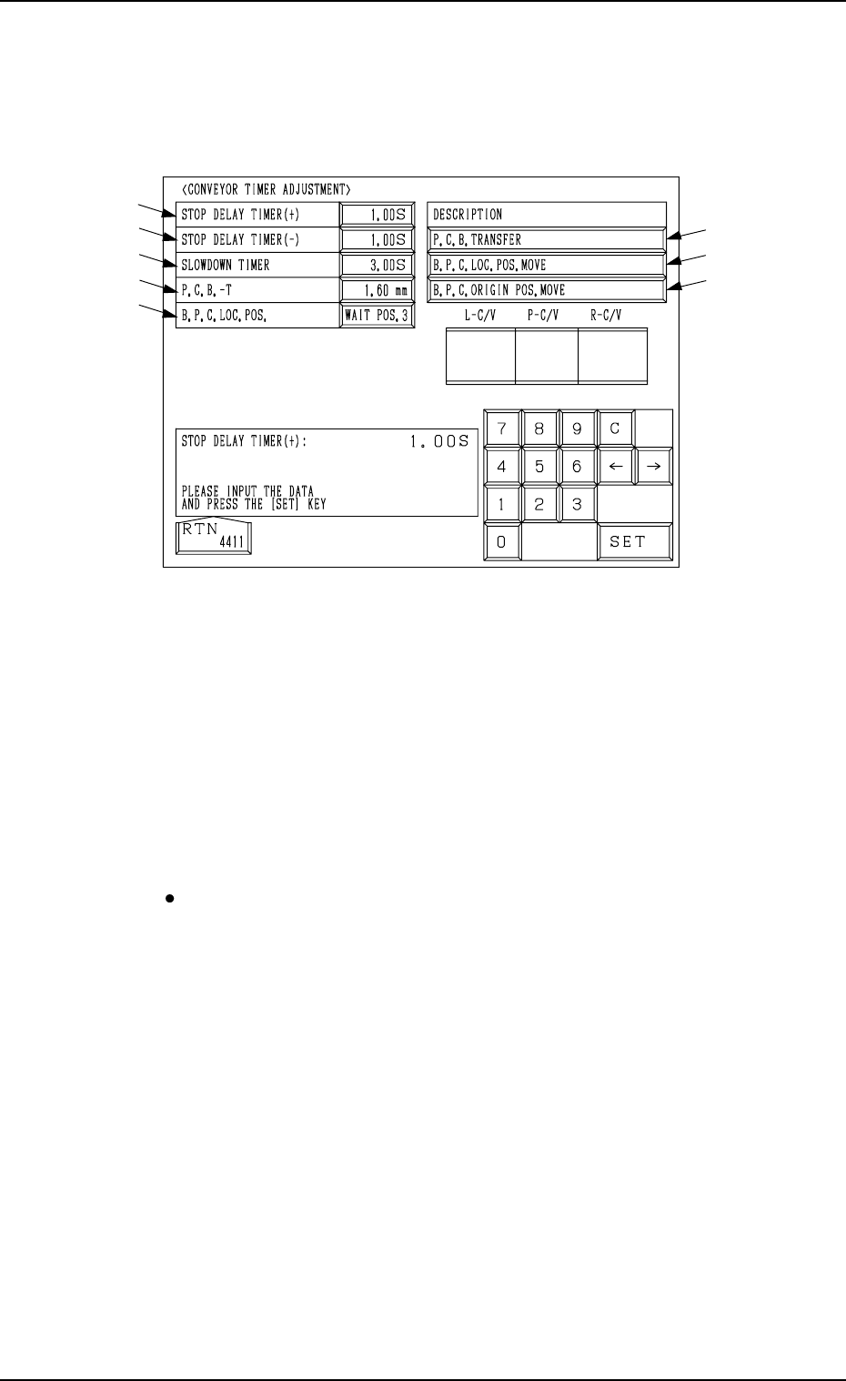 When this key is pressed, the “CONVEYOR TIMER ADJUSTMENT” dis-