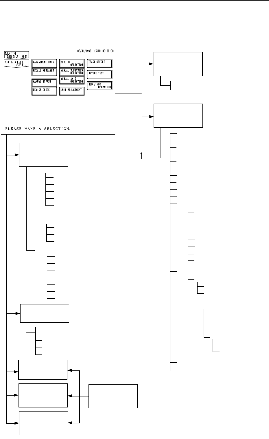 Tg0249-PM-MM 0004-002 3-2 1. Hierarchical Structure of SPECIAL SEL. Displays (3. in Section 3) RECALL MES- SAGES (4. in Section 3) MANAGEMENT DA T A • P A TTERN PROGRAM MANAGEMENT DA T A • P A TTERN PROGRAM PRODUCTION HI…