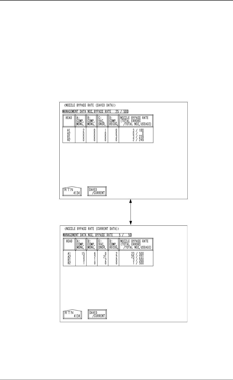 When the [SAVED/CURRENT] key is pressed, the “NOZZLE BYPASS RATE