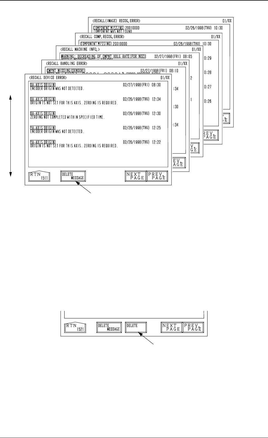 Tg0249-PM-MM • Each message is arranged and recalled in a time series. • Mark (green) shows an error ocurred during operation. How to Delete the Recalled Messages (1) Press the [DELETE MESSAGE] key A. The key turns red, …