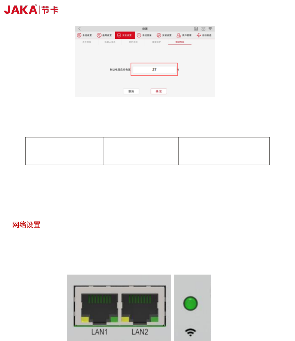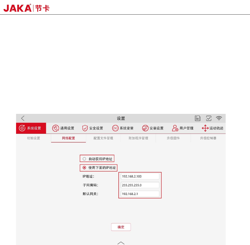 LAN2 网口为 10M/100M/1000M 自适应网口,出厂默认配置为动态获取IP 地址,用户可以登录节卡APP 配置为静态IP,路
