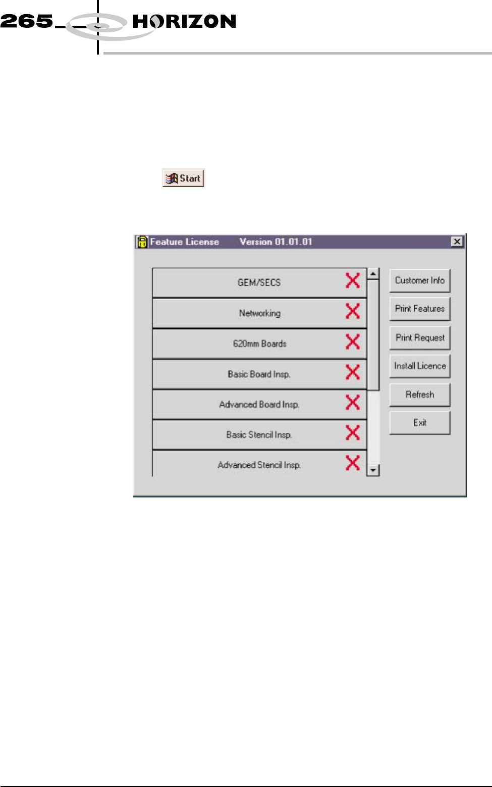 FEATURE LICENSING Introduction This standalone program accessed from the taskbar, enables a user to request and install a licence to run a new feature on the machine. The opening window lists all the licences available o…