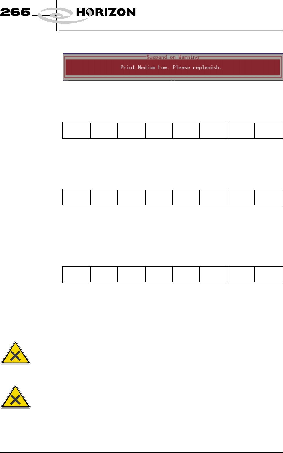 11. If the set preference is set to suspend, the following window is displayed: The tricoloured beacon shows red. 12. Select Refill Paste (F1). Refill Paste End Run The message ‘Open the cover and change the ProFlow cass…