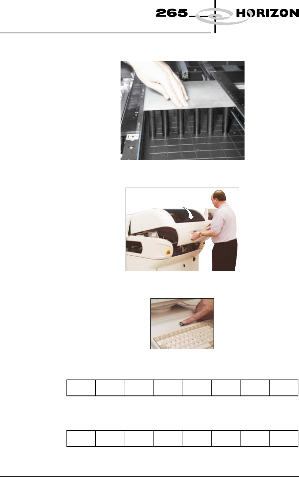 33. Select Open Cover (F2). Adjust Open Cover Remove Cleaner Board Stop Full Width Load Width Print Height Exit 34. Lift the front printhead cover. 35. Select Board Clamps (F3), to open the clamps. Adjust Board Clamps Se…